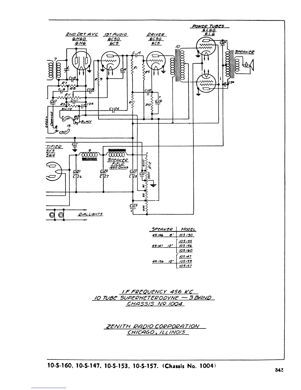 Zenith 1937 - 10-Tube Superheterodyne Chassis 1004 Circuit Diagram