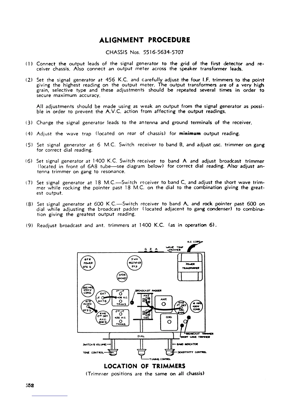 Zenith 1937 - Alignment Procedure for Chassis 5516-5634-5707