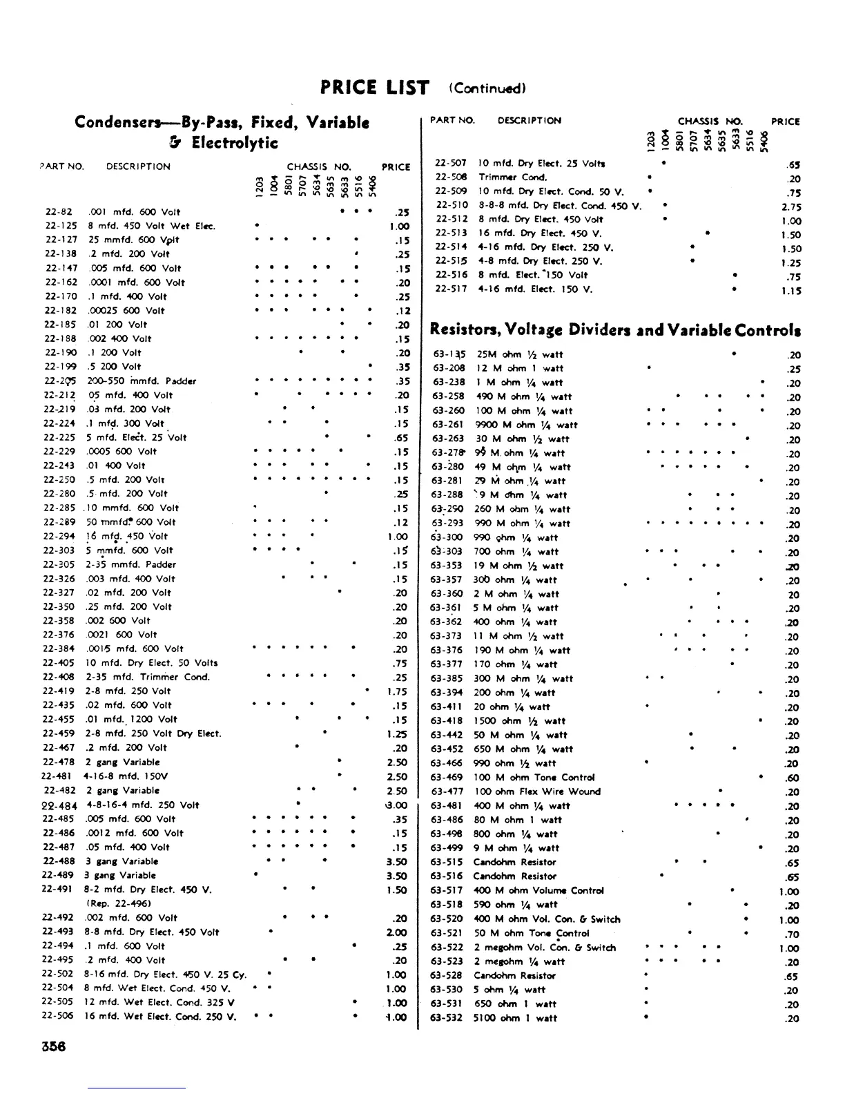 Zenith 1937 - Condensers & Resistors