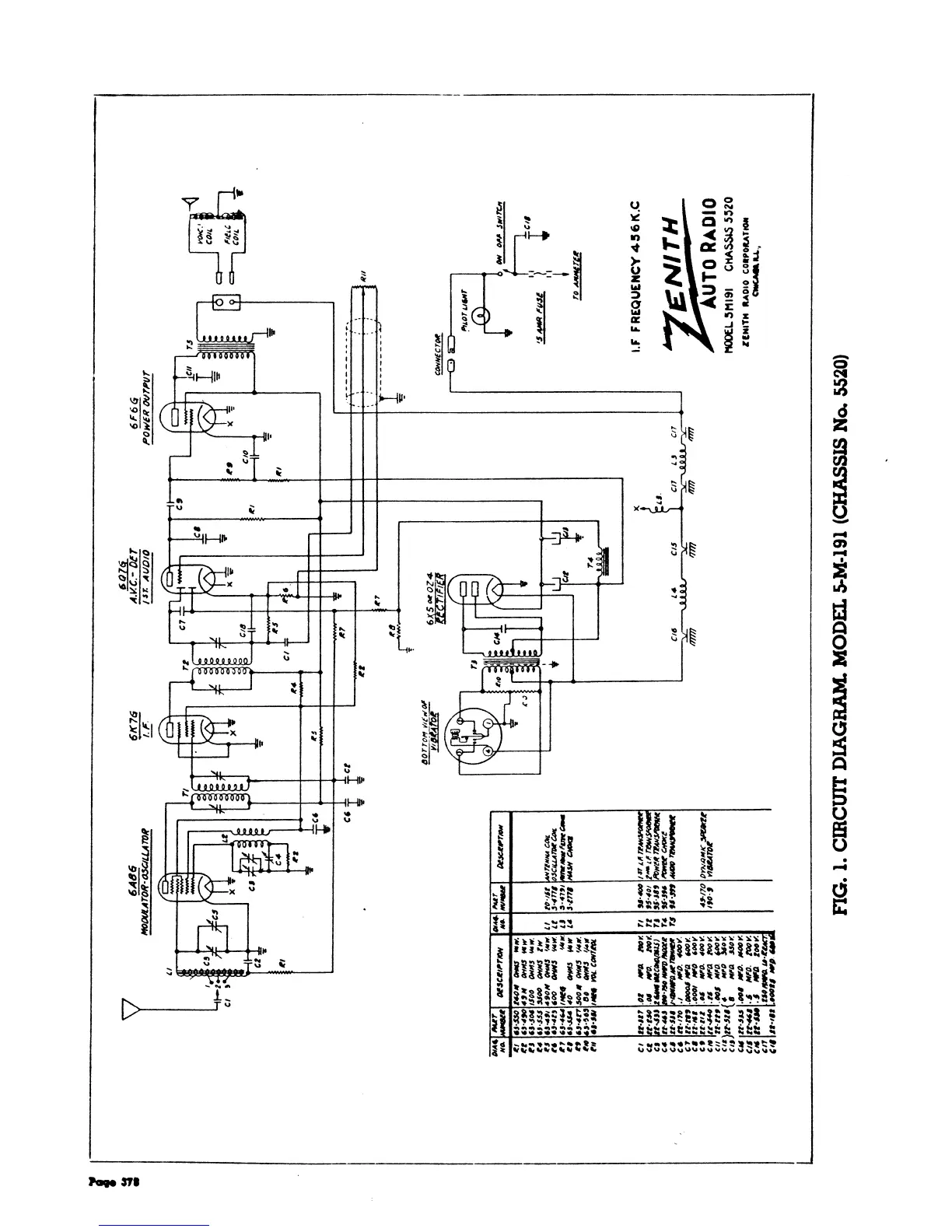 Zenith 1937 - Automobile Receivers Chassis 5520 Circuit Diagram