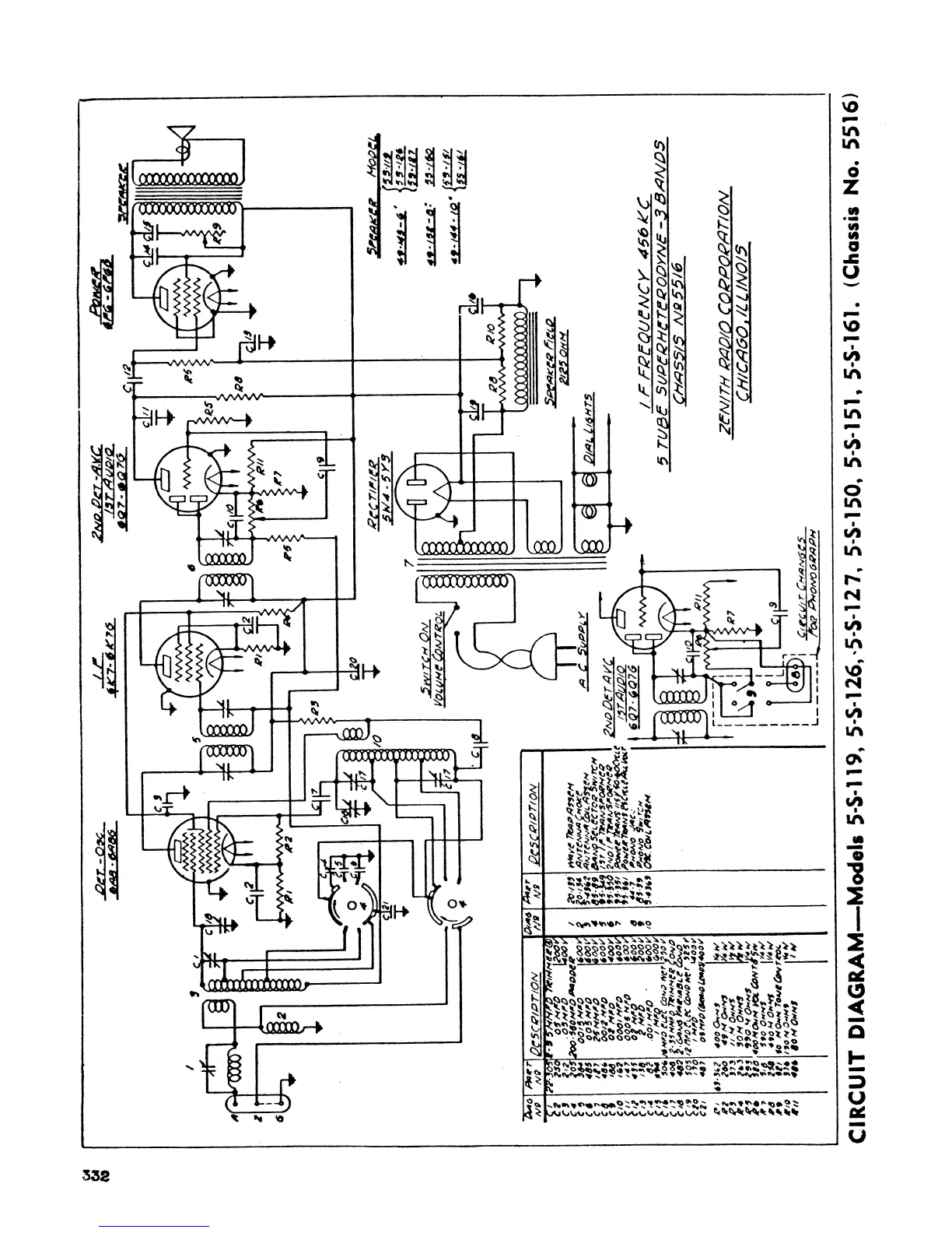 Zenith 1937 - 5-Tube Superheterodyne Chassis 5516 Circuit Diagram
