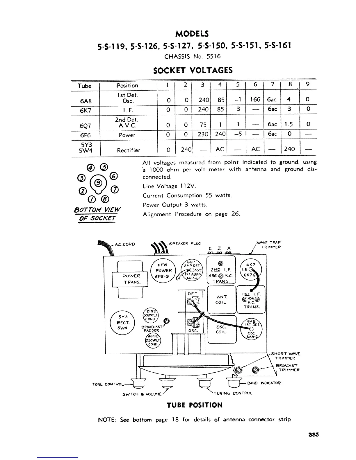Zenith 1937 - 5-S-119, 5-S-126, 5-S-127 Socket Voltages