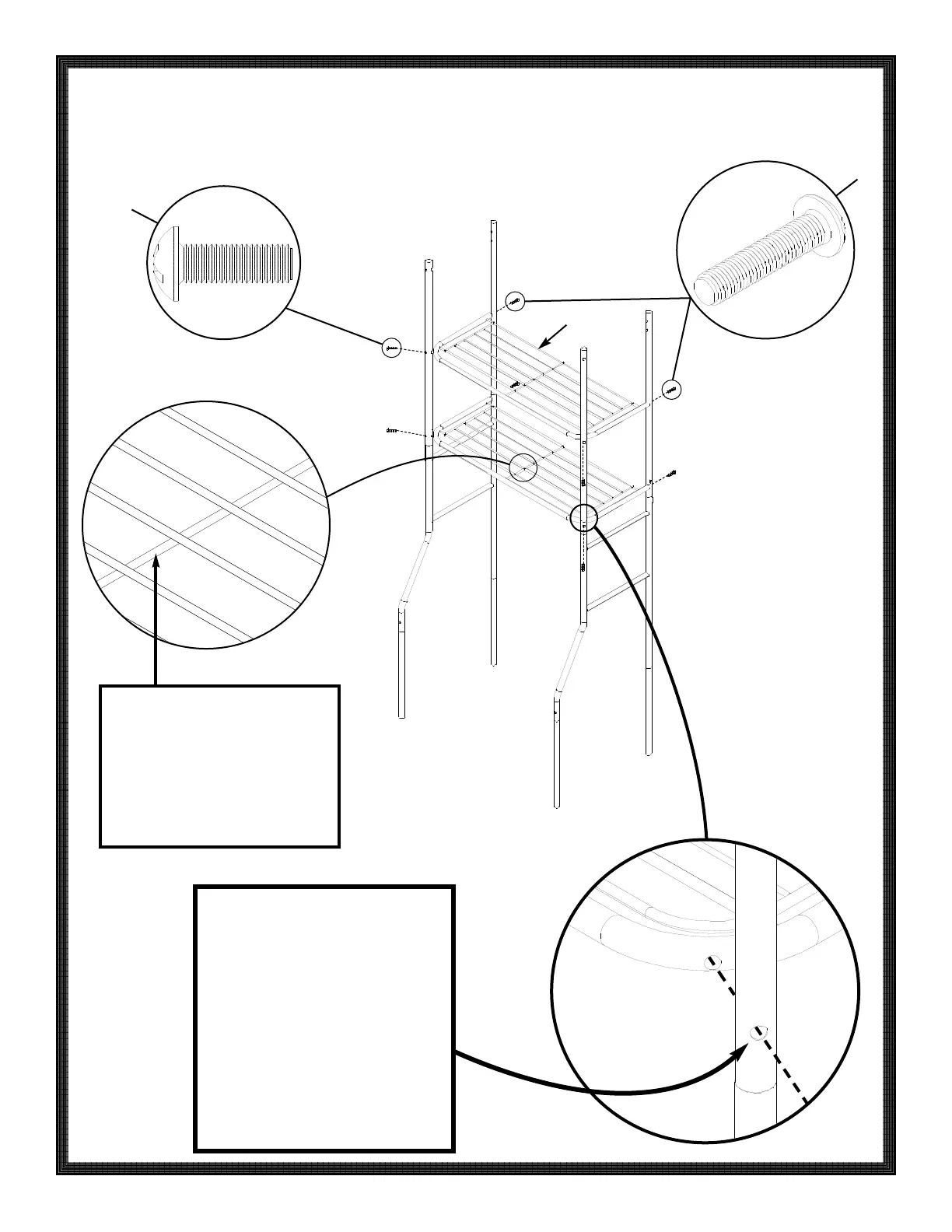 Fasten 2 wire shelves (B) to the leg assem-