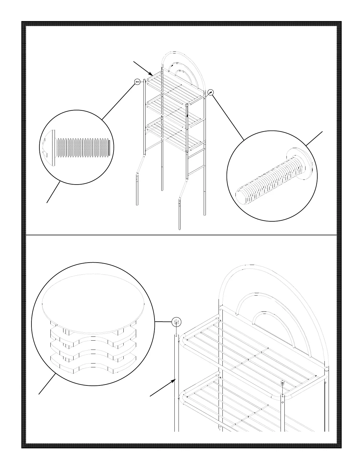 Fasten top wire shelf (B) to the assembly. Asegure la repisa alámbrica superior (B) al