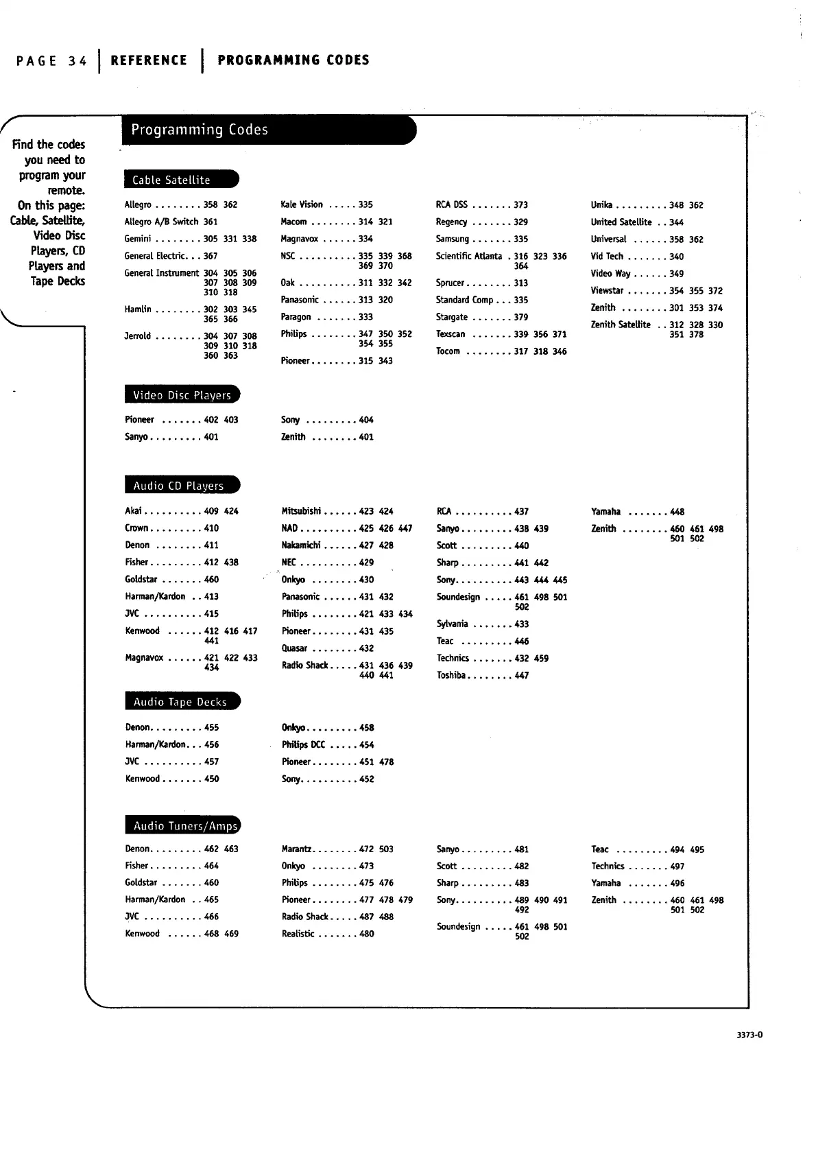 Goldstar ....... 460 Onkyo ........ 430 Sony.......... 443 444 445