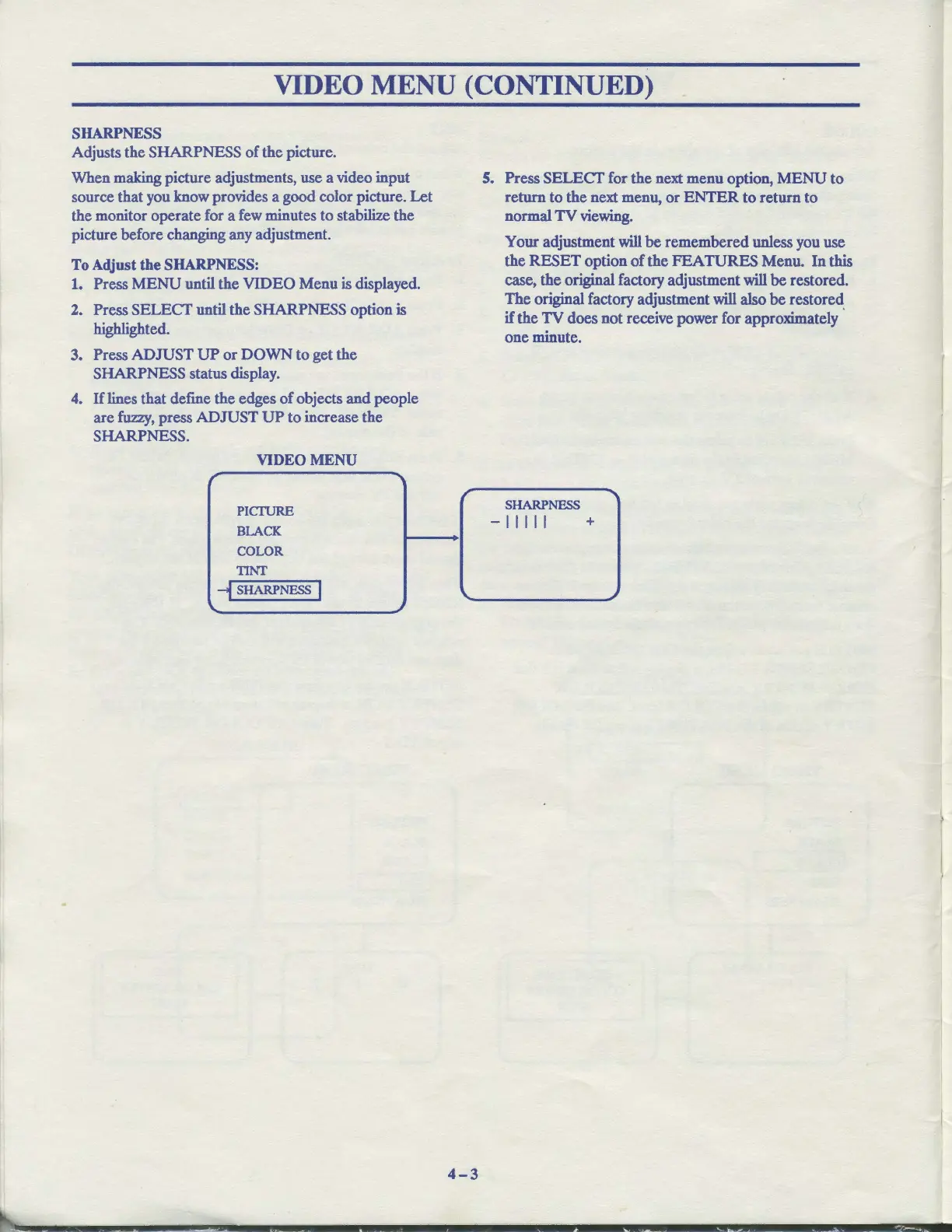 To Adjust the SHARPNESS: