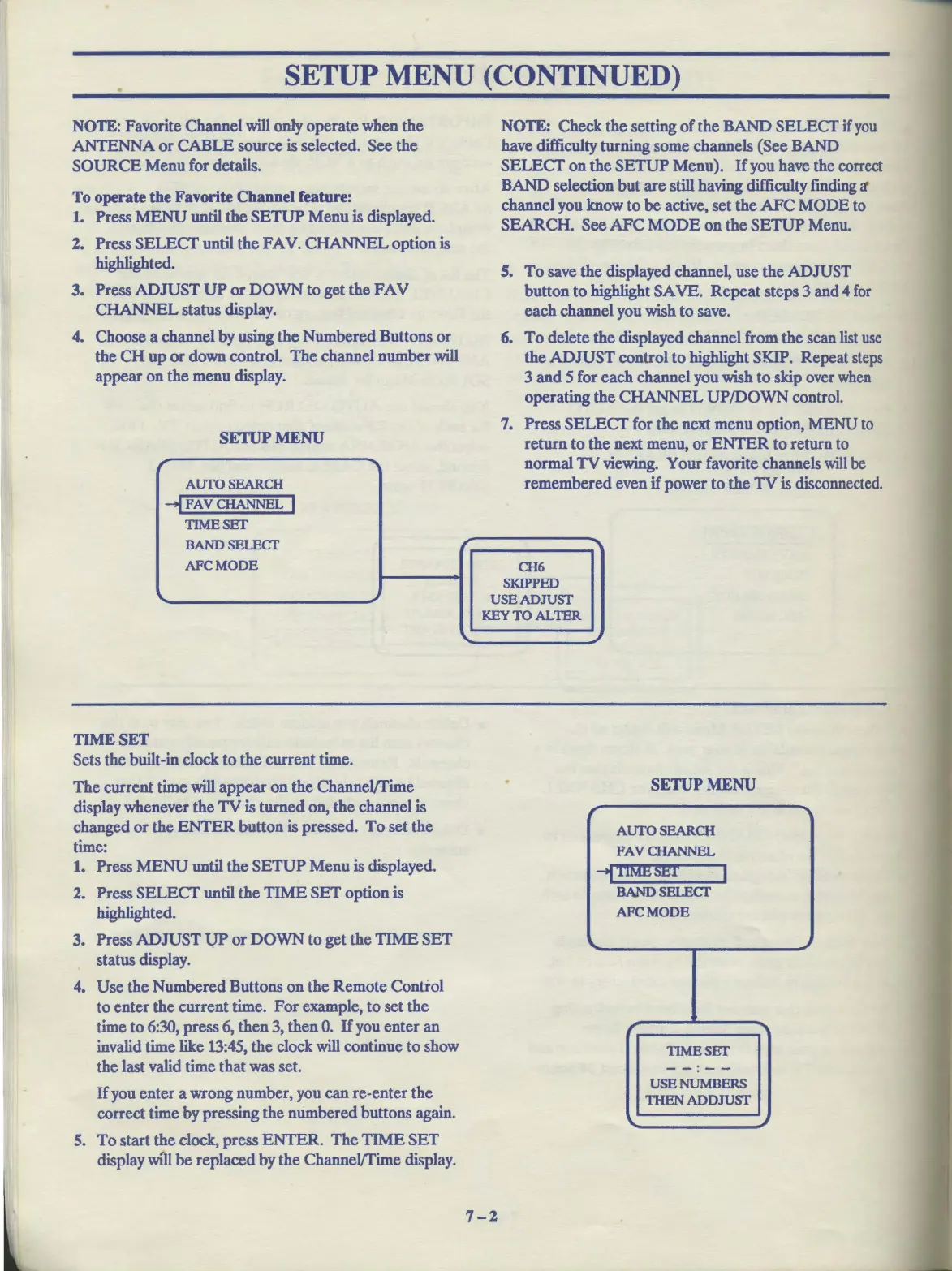 SETUP MENU (CONTINUED)