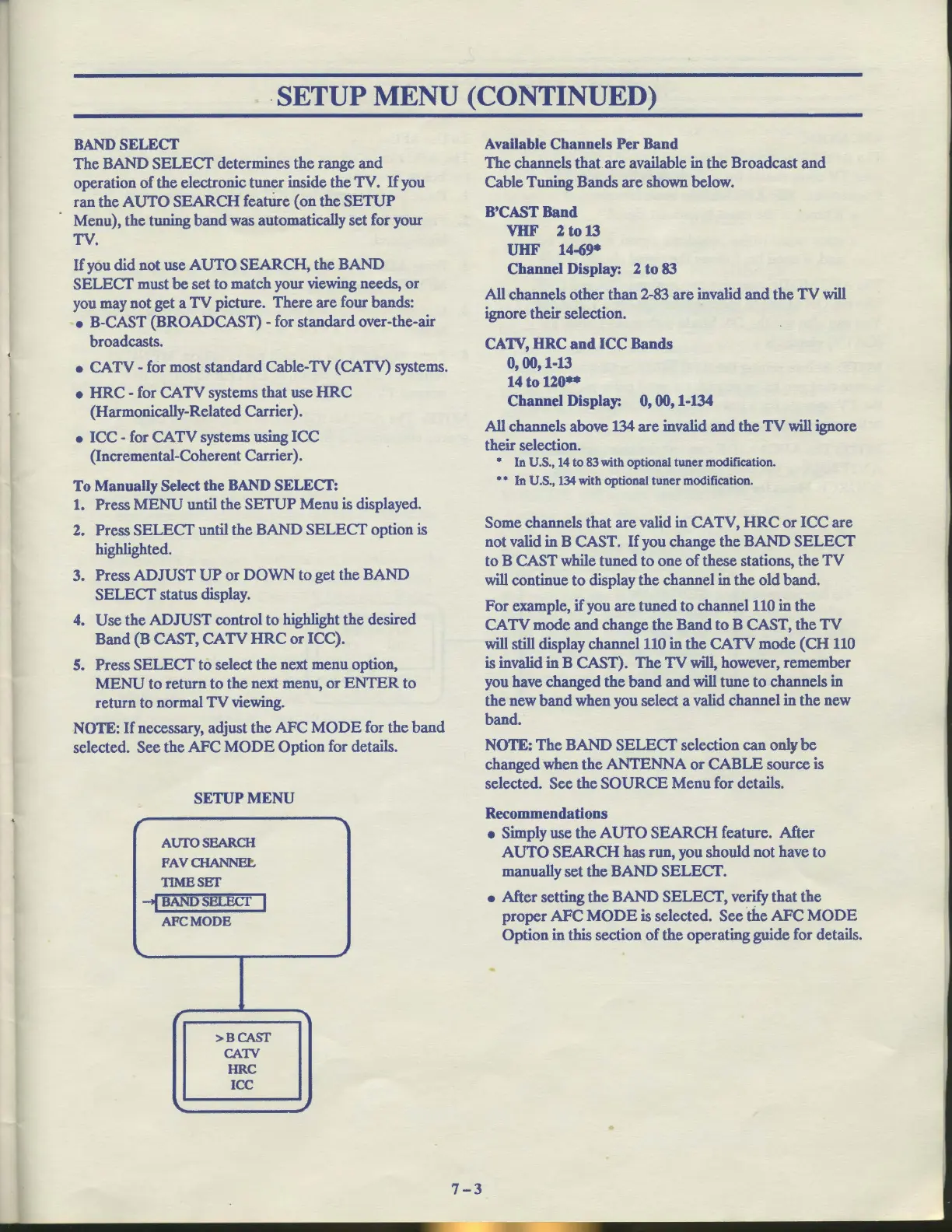 -SETUP MENU (CONTINUED)