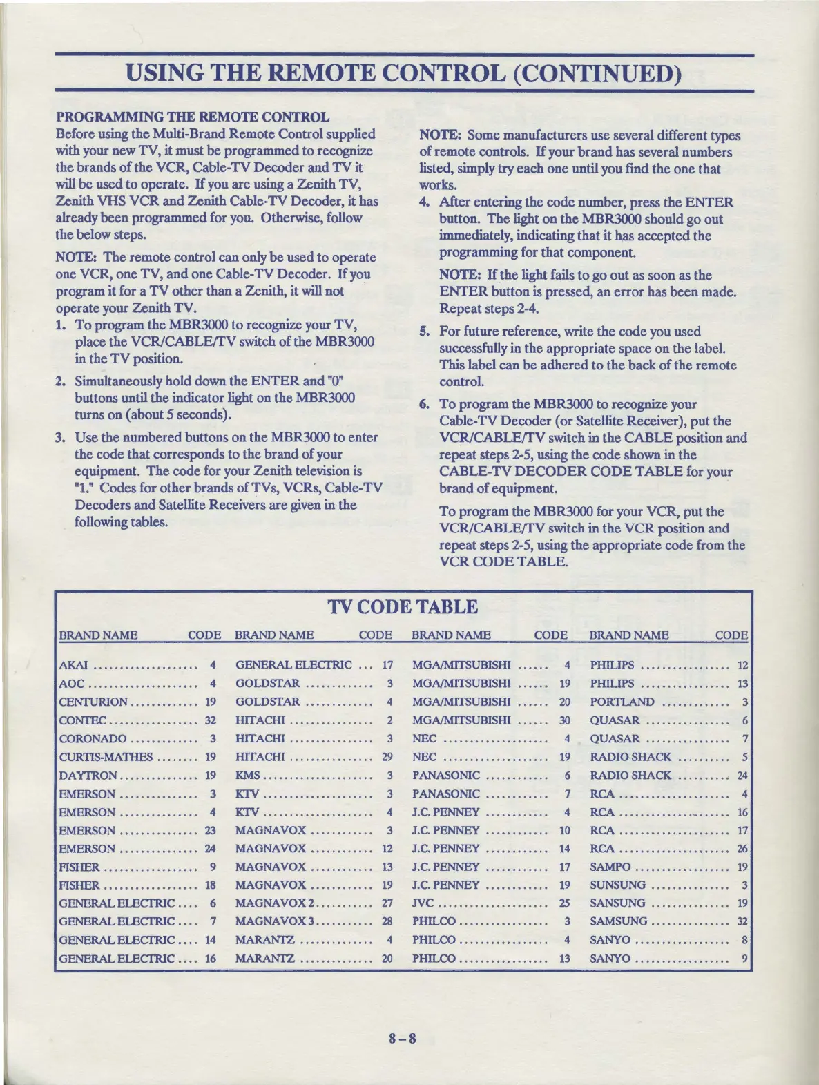 operate your Zenith TV.