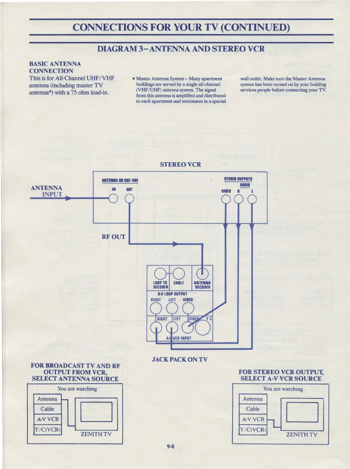 wall outlet. Make sure the Master Antenna