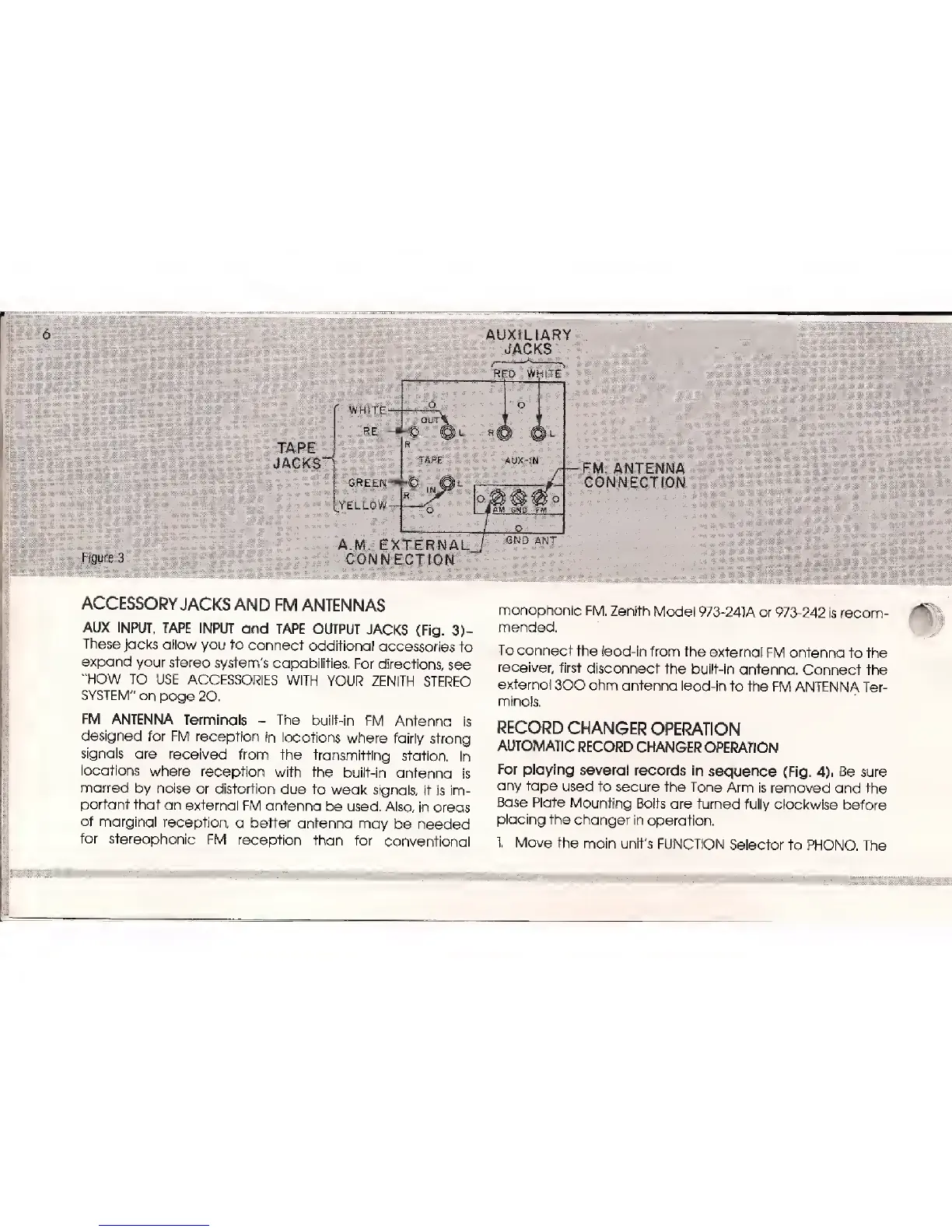 Zenith Allegro - Accessory Jacks and Antennas; Audio Input;Output Jacks; Antenna Connections; Record Changer Operation