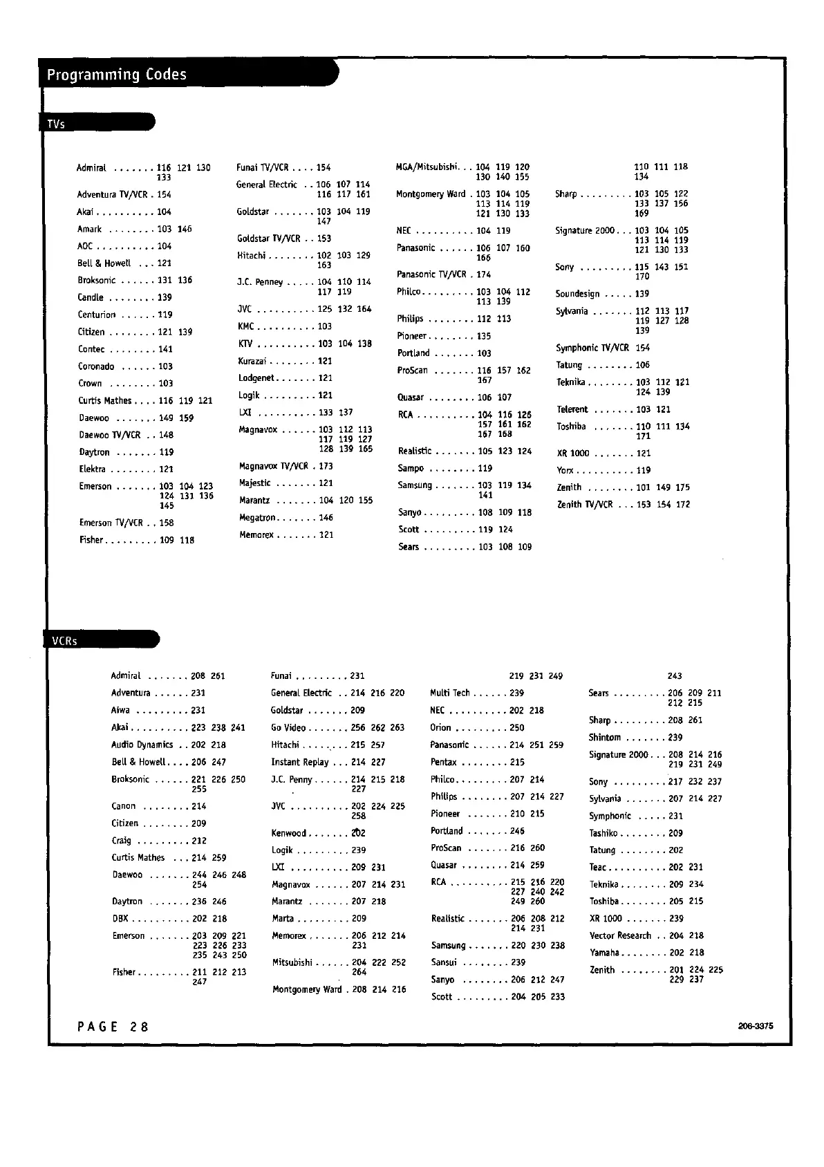 214 231 RCA .......... 215 216 220 Teknika........ 209 234
