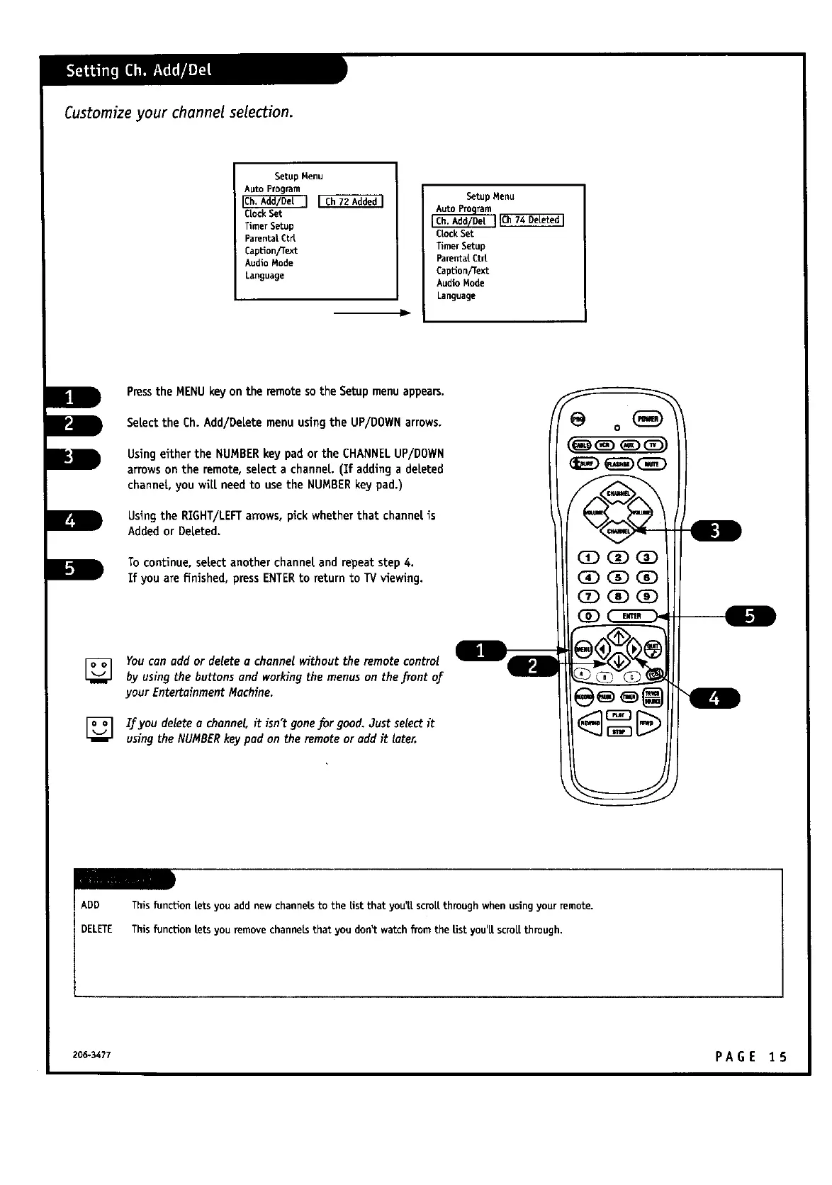 [] Youcan add or delete a channel without the remote control