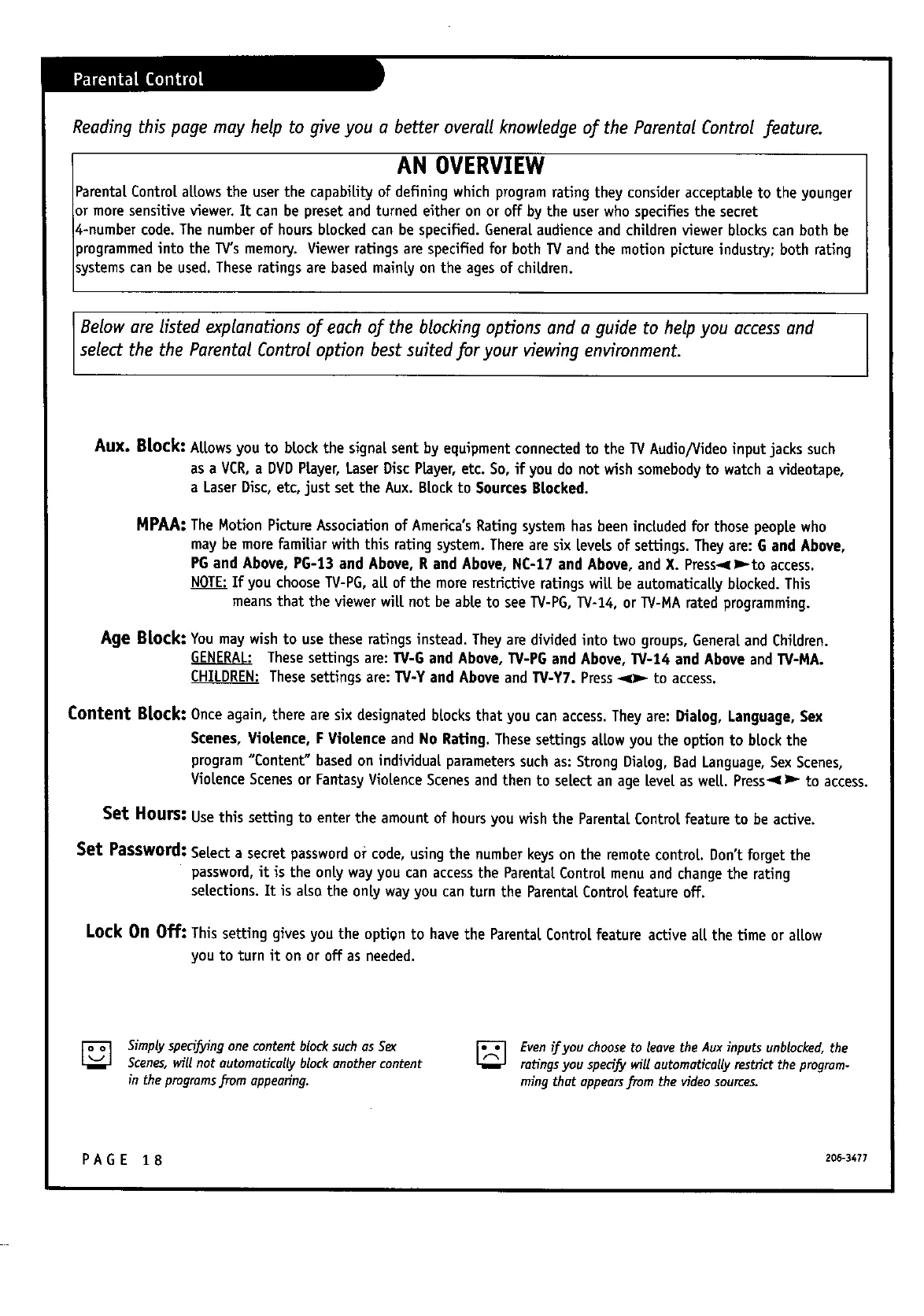 programmedinto the TV'smemory. Viewer ratings are specified for both TVand the motion picture industry; both rating