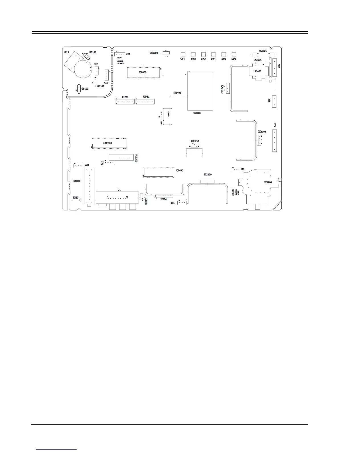 The ICX2200 integrated circuit (IC) handles all of the audio/video, sync, and sweep drive processing. The IC6000 is