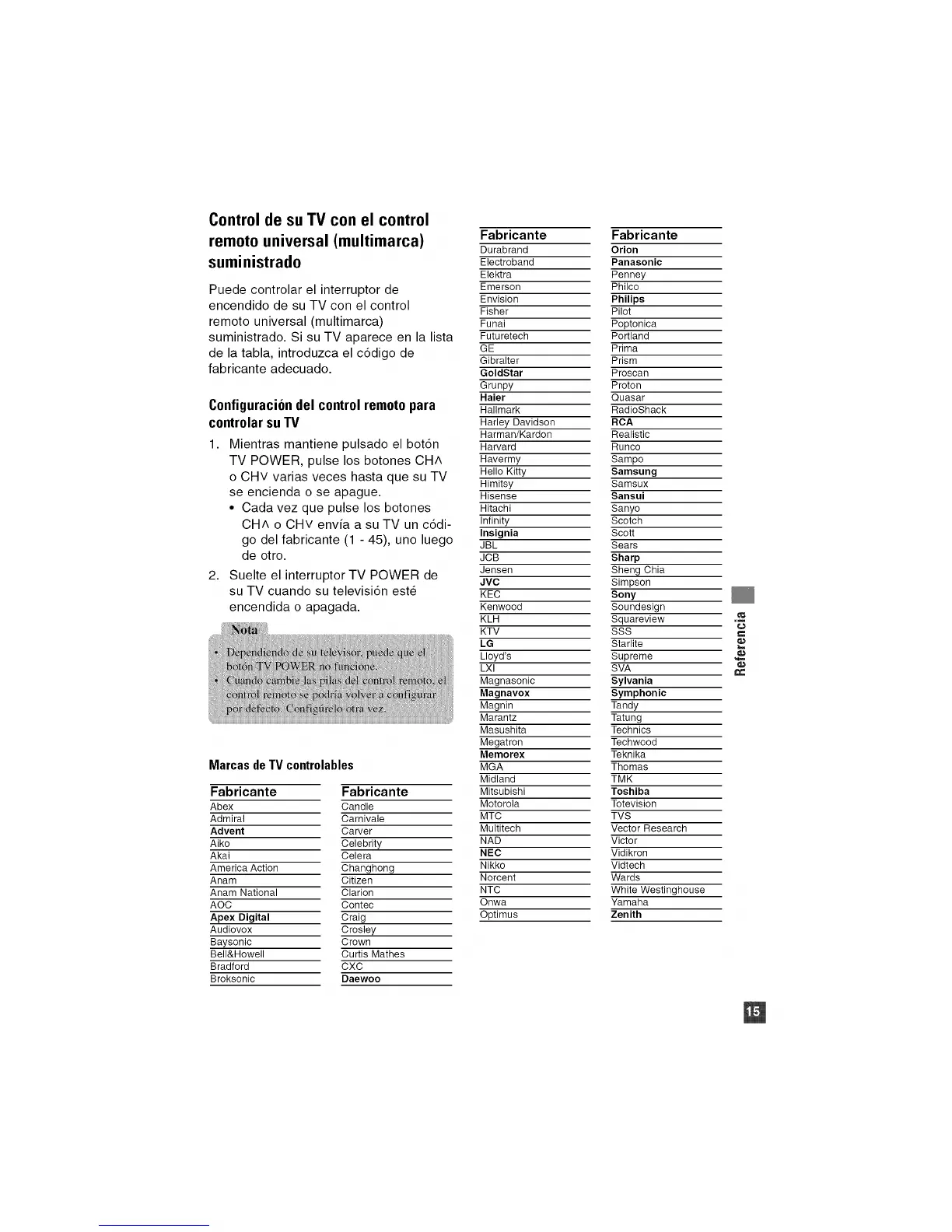 suministrado. Si su TV aparece en la lista