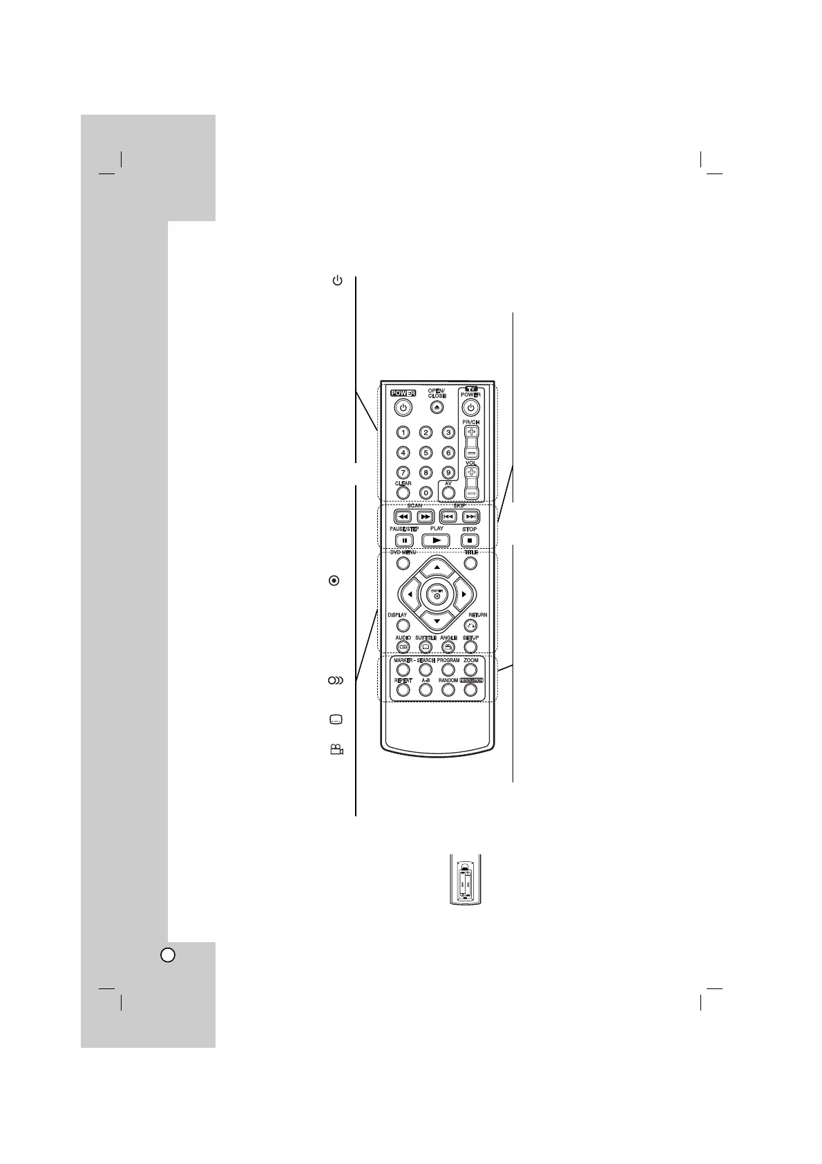 PR/CH +/–: Selects TV’s channel.