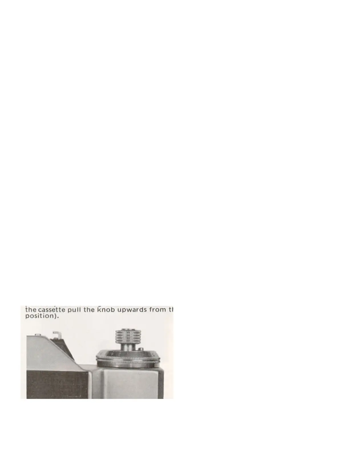 (Illustration shows the knob in the rewind position, for loading and final removal of the cassette pull the knob