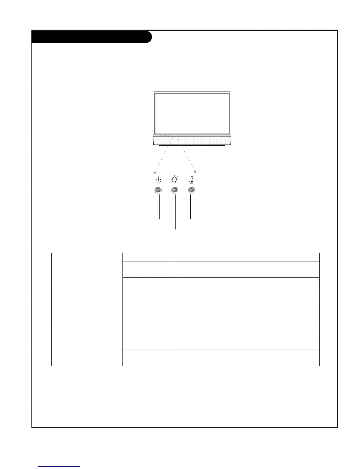 Lamp indicator, operation indicator, and temperature indicator located below the front panel controls,