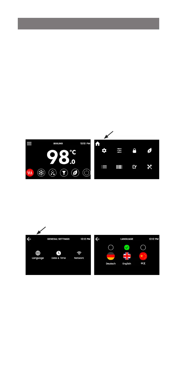 Touch the language icon to navigate to the language screen.