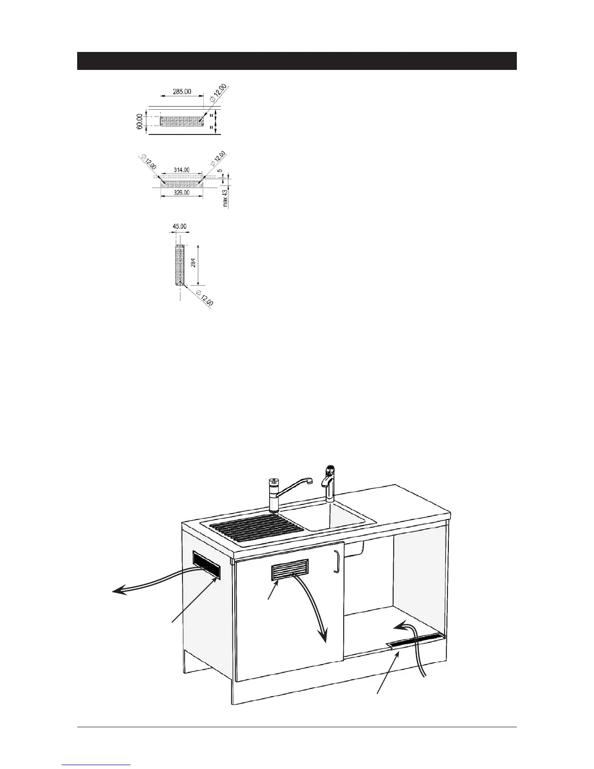 Note: The vent kit has to be installed in a way that allows air to be drawn in from the bottom of the cupboard