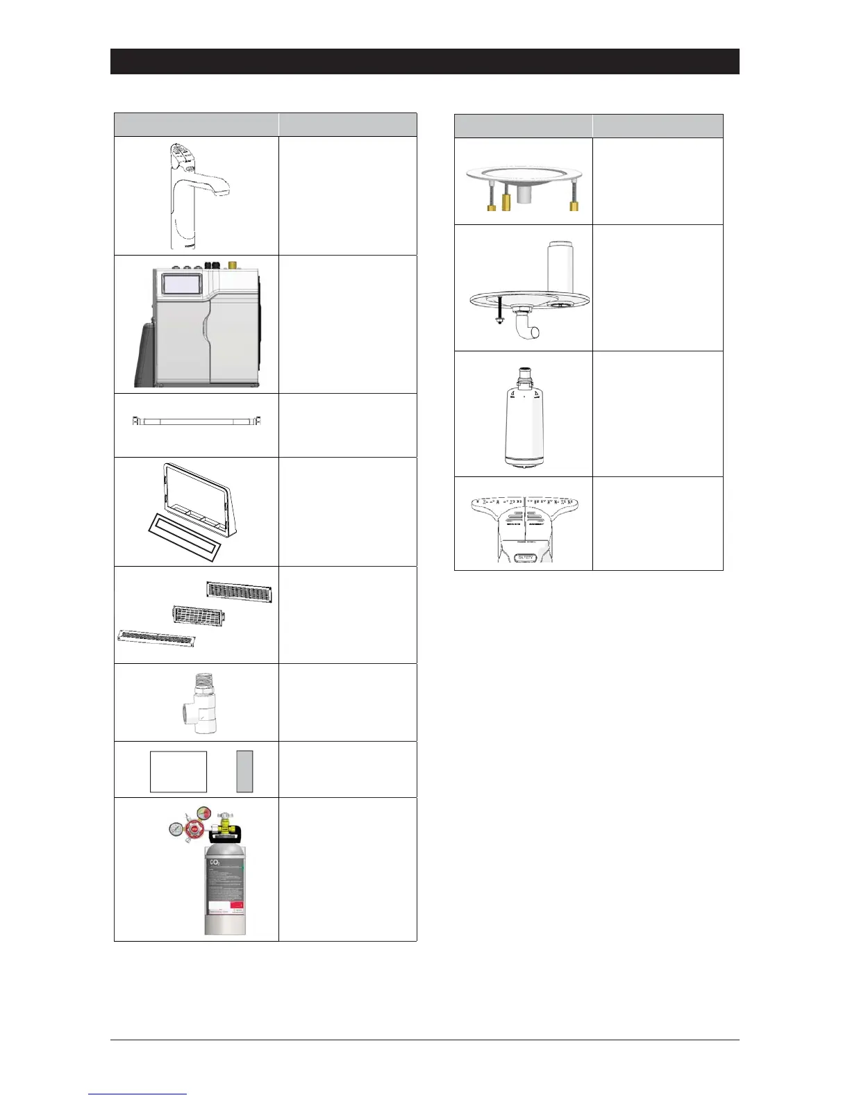 Zenith HydroTap - Major Components and Accessories; Supplied Parts Identification; Available Accessories