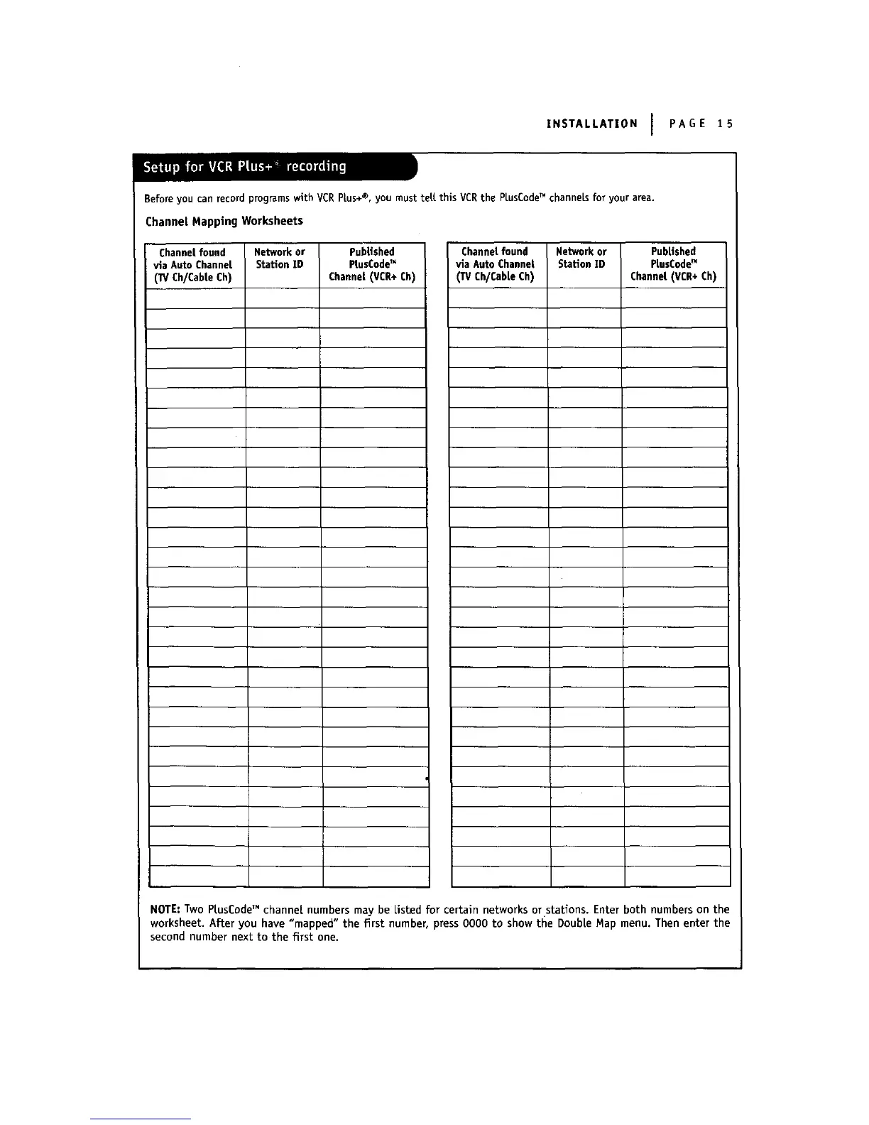NOTE:Two PtusCodeTM channel numbers may be Listedfor certain networks or stations. Enter both numbers on the
