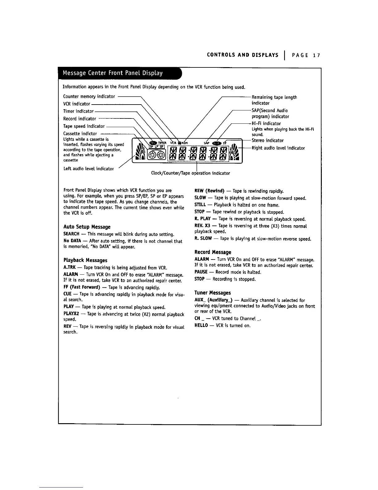 Informationappearsin the FrontPanelDispLaydependingon the VER functionbeing used.