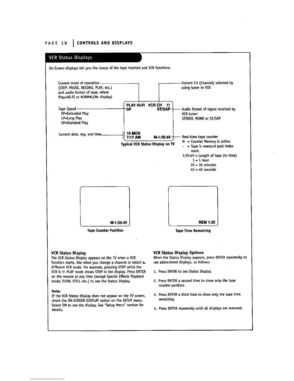 On-Screen displays teLLyou the status of the tape inserted and VCRfunctions.