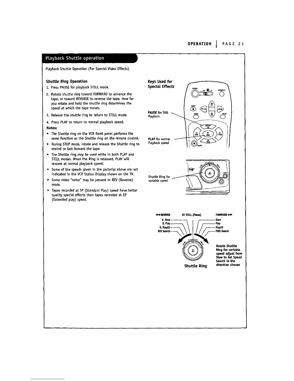 PLaybackShuttle Operation (For Special Video Effects)
