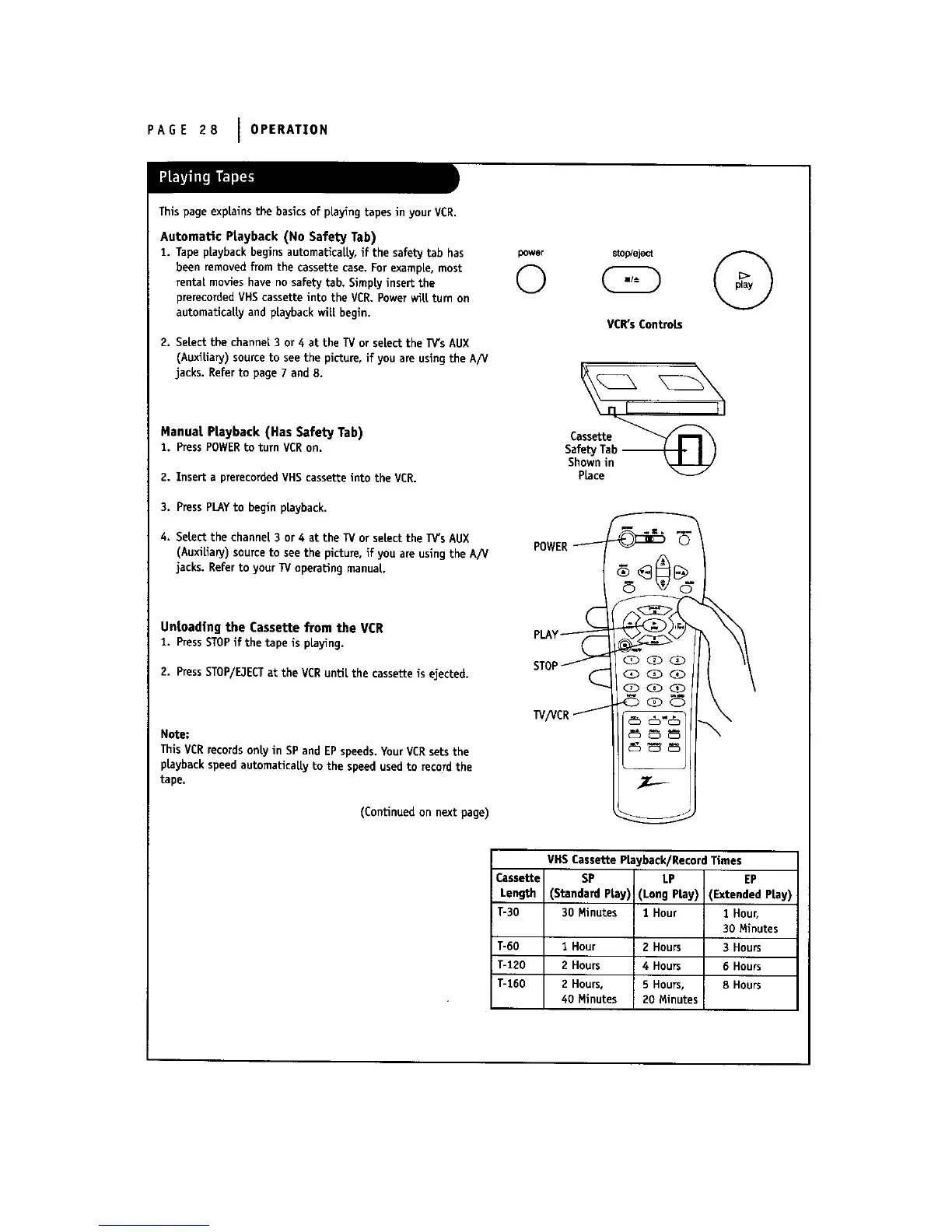 Thispage explainsthe basicsof playingtapesinyour VCR.