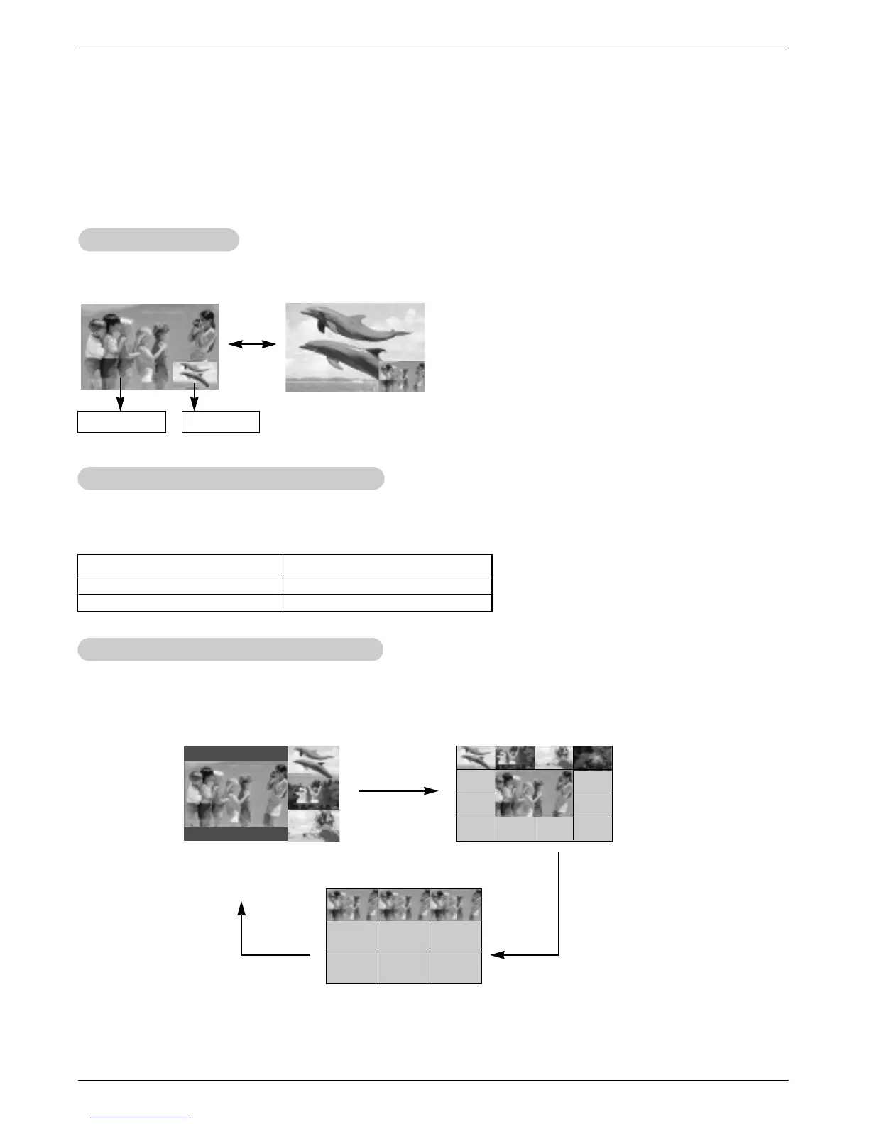 - Press the scan button in PIP mode. Each press of scan button changes the screen as shown below.