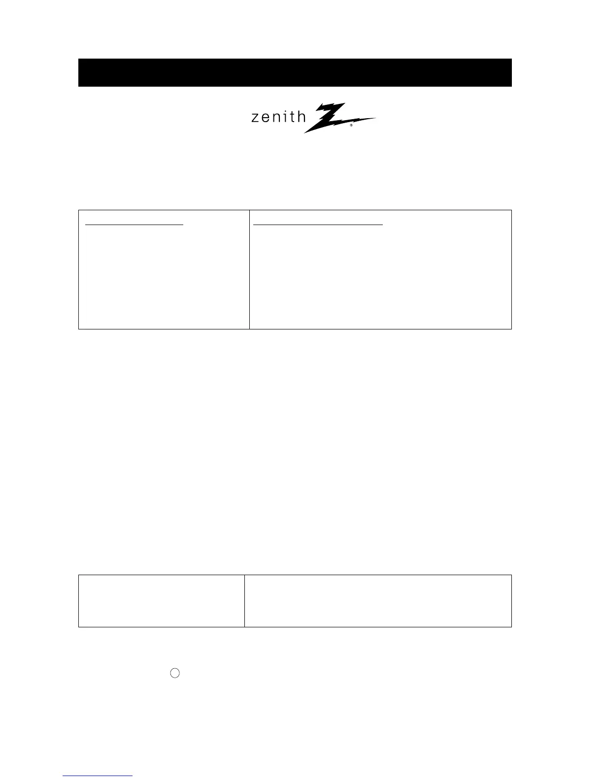 Zenith will repair or replace your product, at Zenith’s option, if it proves to be defective in material or