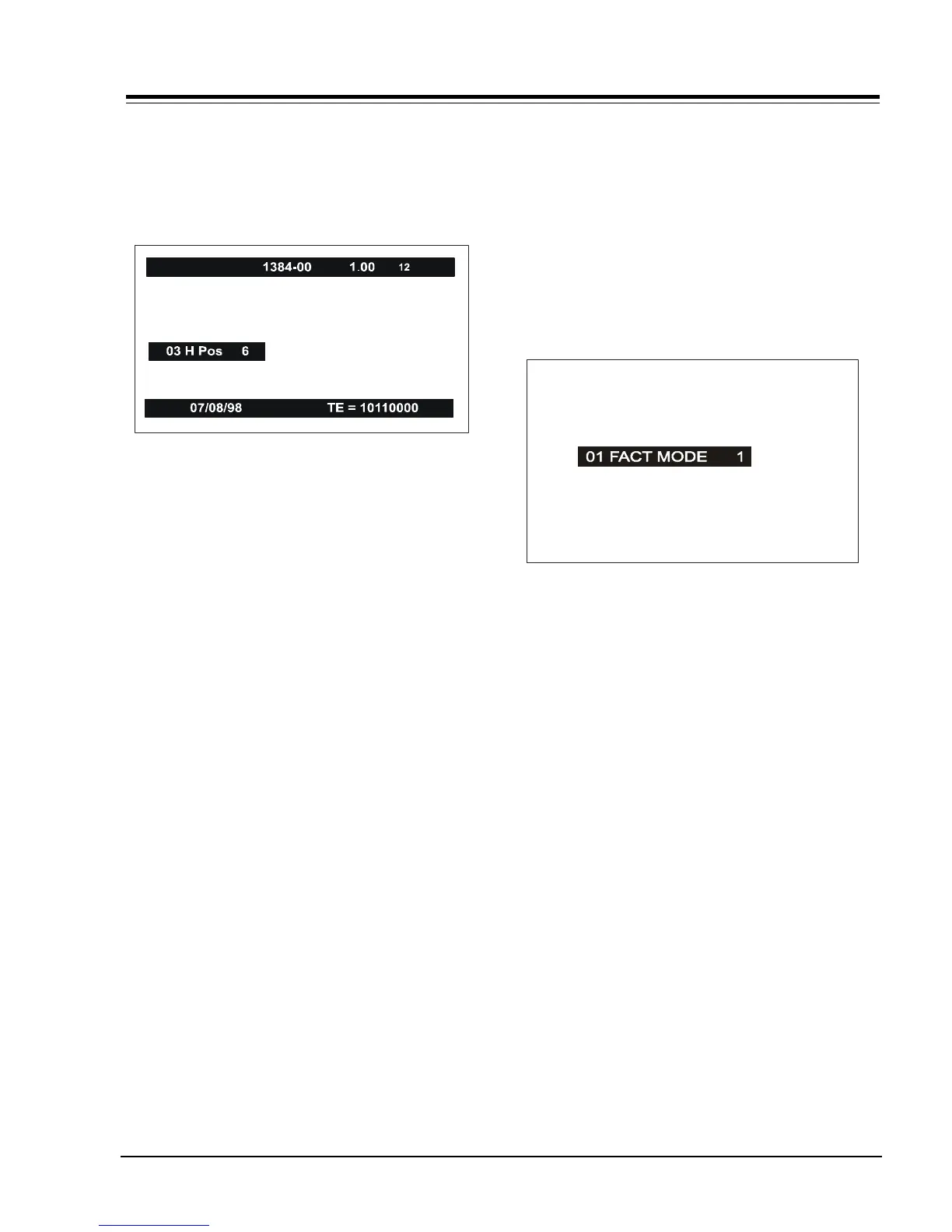 00 F MODE: (Factory Mode) Use SELECT UP and DOWN