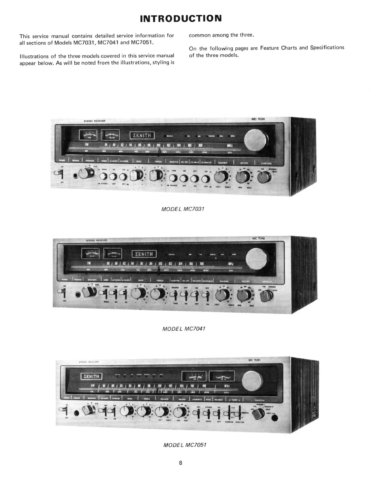 Illustrations of the three models covered in this service manual of the three models,