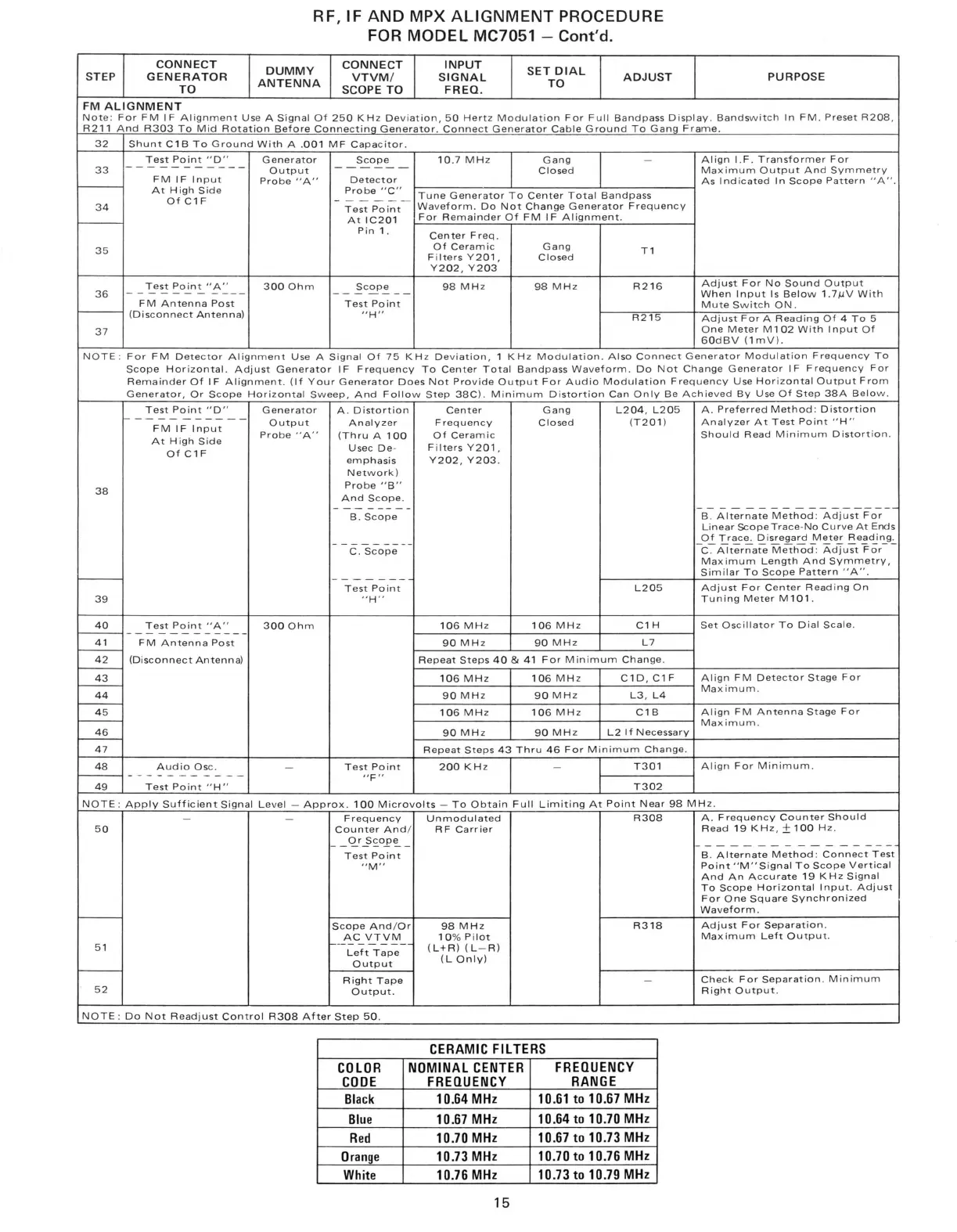 For FM IF Alignment Use A Signal Of 250 KHz Deviation, 50 Hertz Modulation For Full Bandpass Display. Bandswitch In FM. Preset R208,