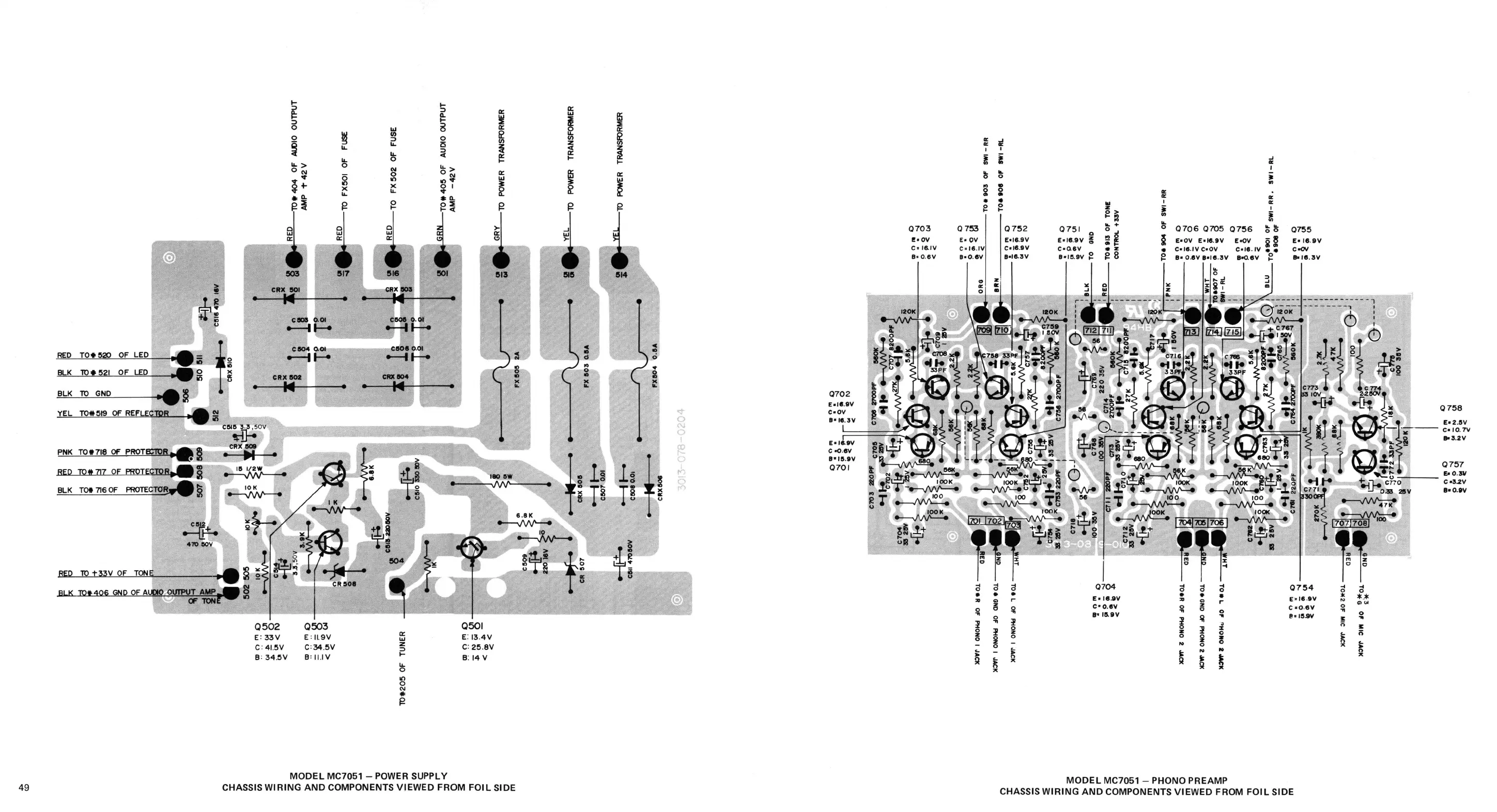 CHASSIS WIRING AND COMPONENTS VIEWED FROM FOIL SIDE