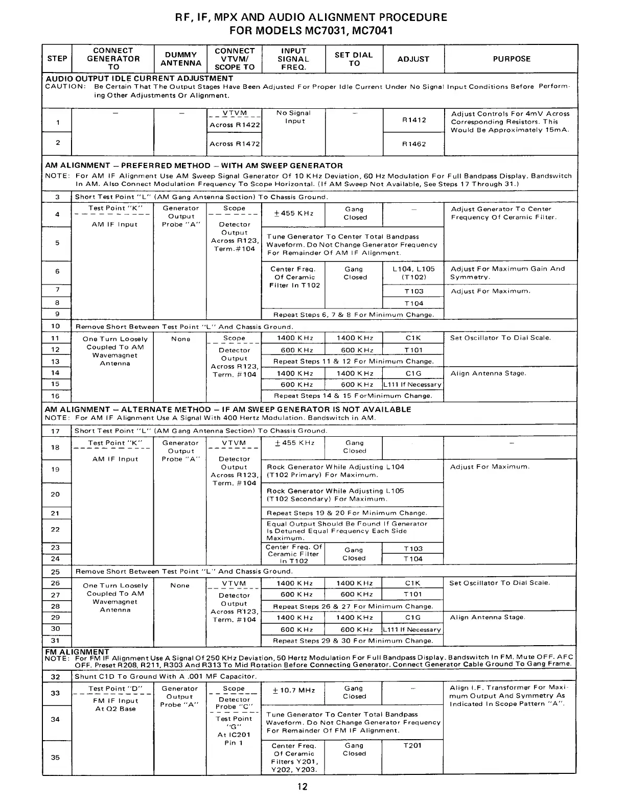 IF, MPX AND AUDIO ALIGNMENT PROCEDURE
