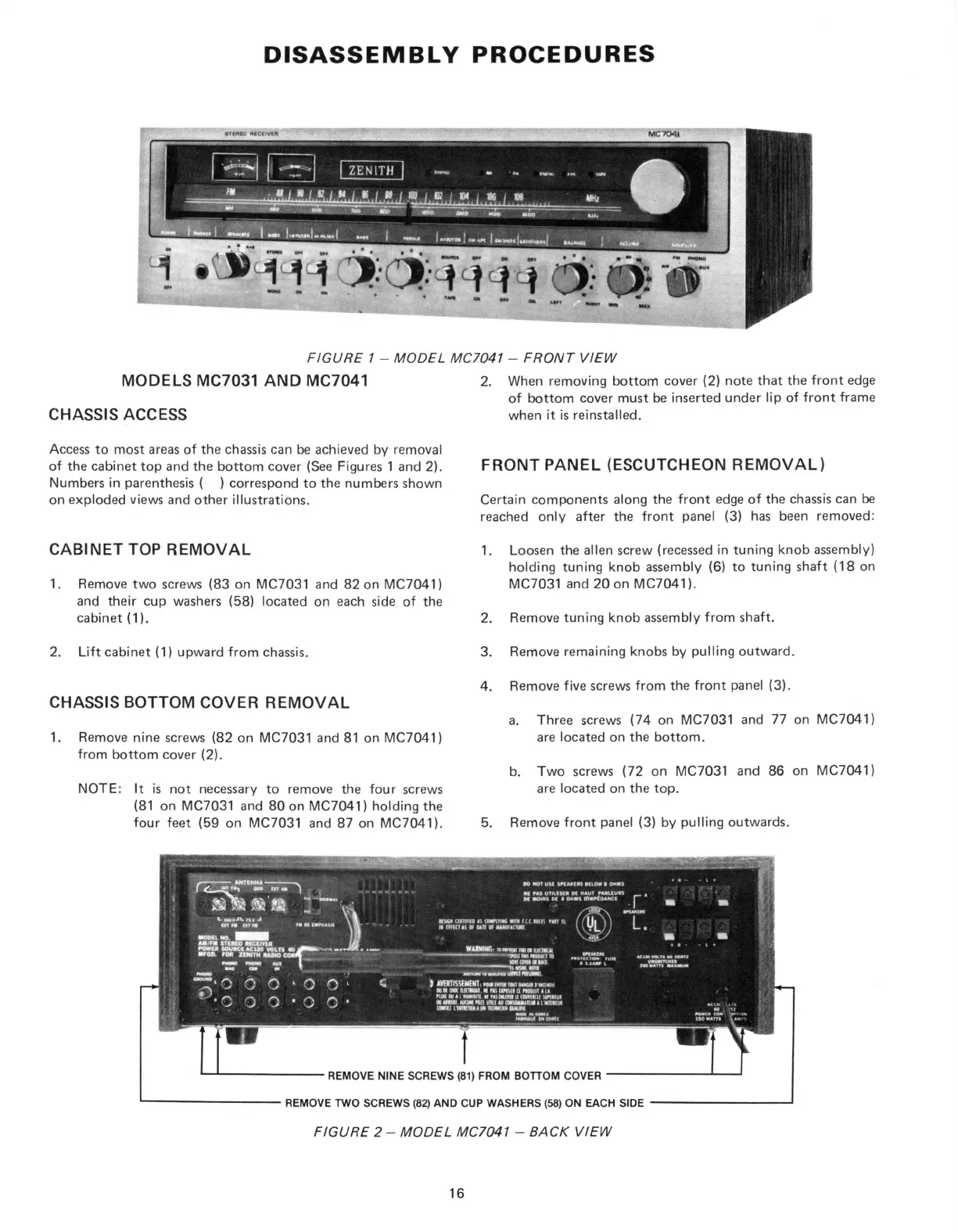 DISASSEMBLY PROCEDURES