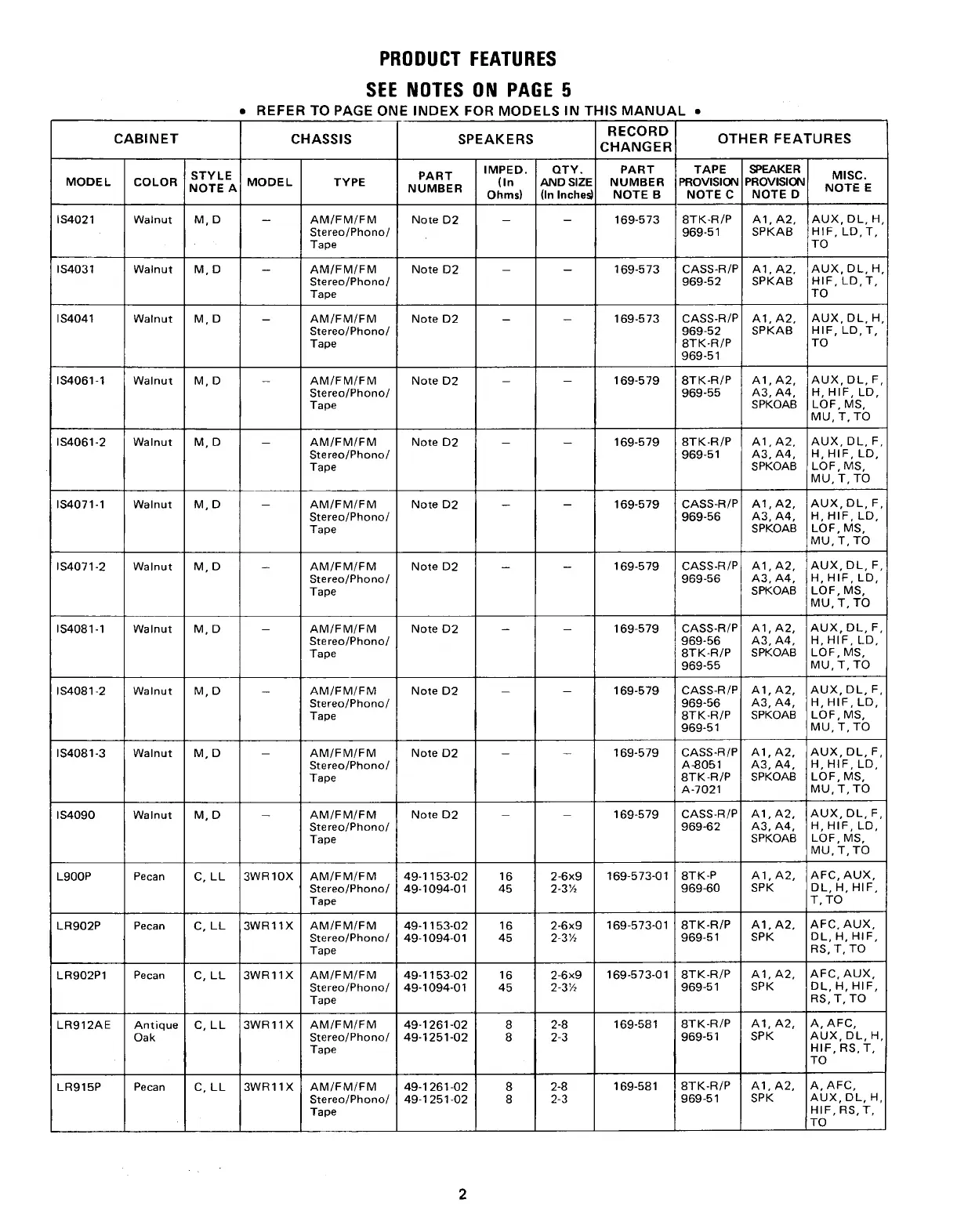 Zenith MC7051 - Product Features Overview; Model Specifications and Features