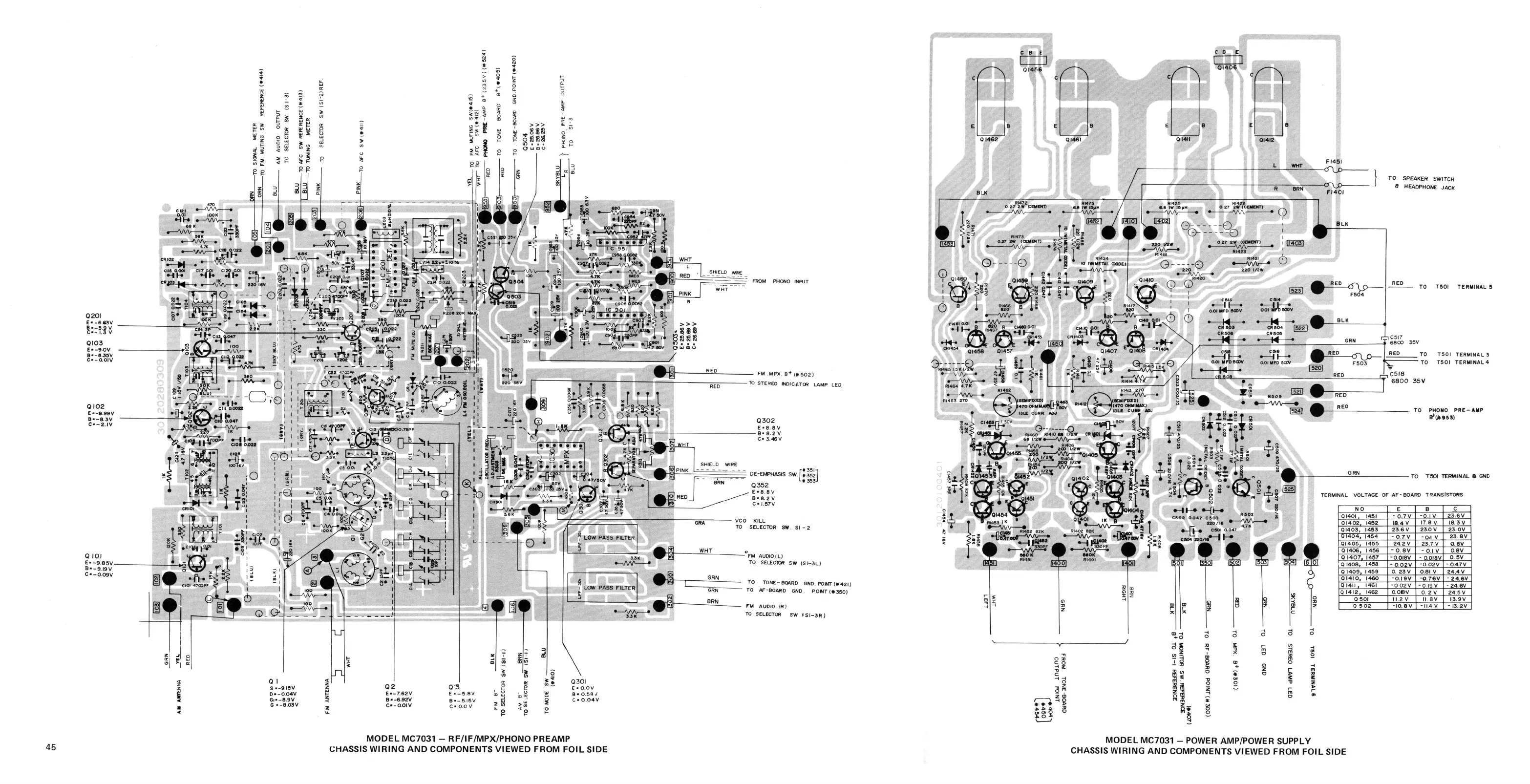 CHASSIS WIRING AND COMPONENTS VIEWED FROM FOIL SIDE