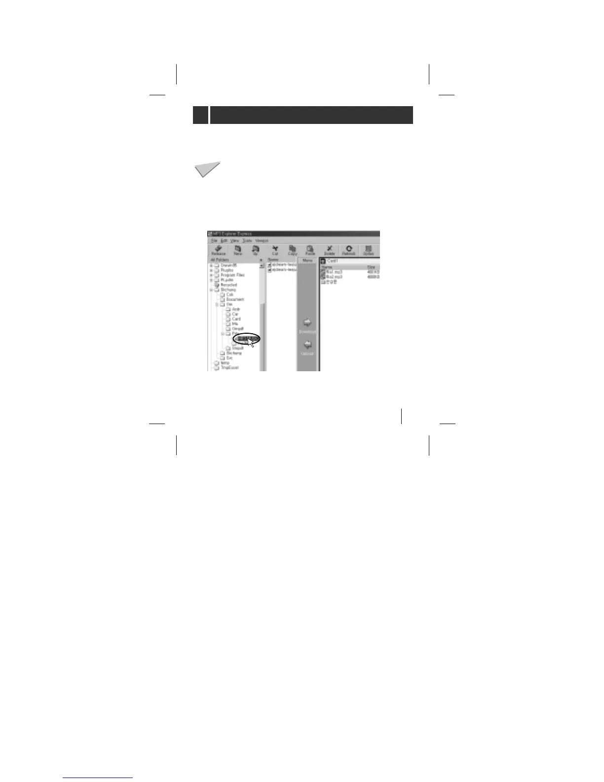 To upload the MP3 files or data files from MP3 Player to PC,