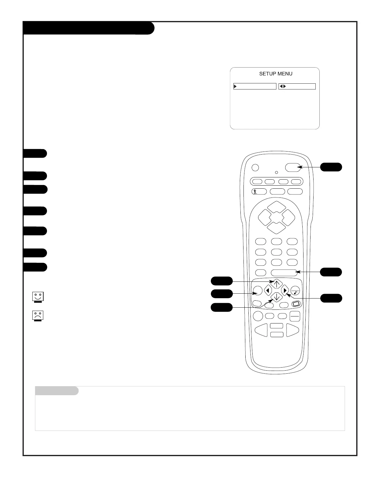 Press MENU repeatedly until the Setup menu appears.