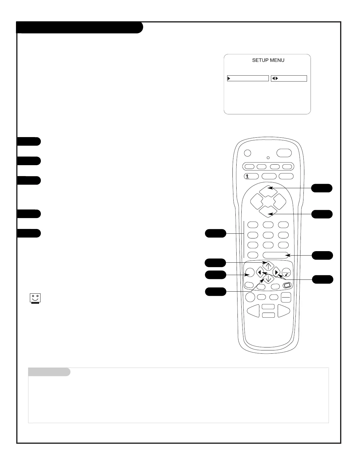 Press MENU on the remote repeatedly until the Setup menu