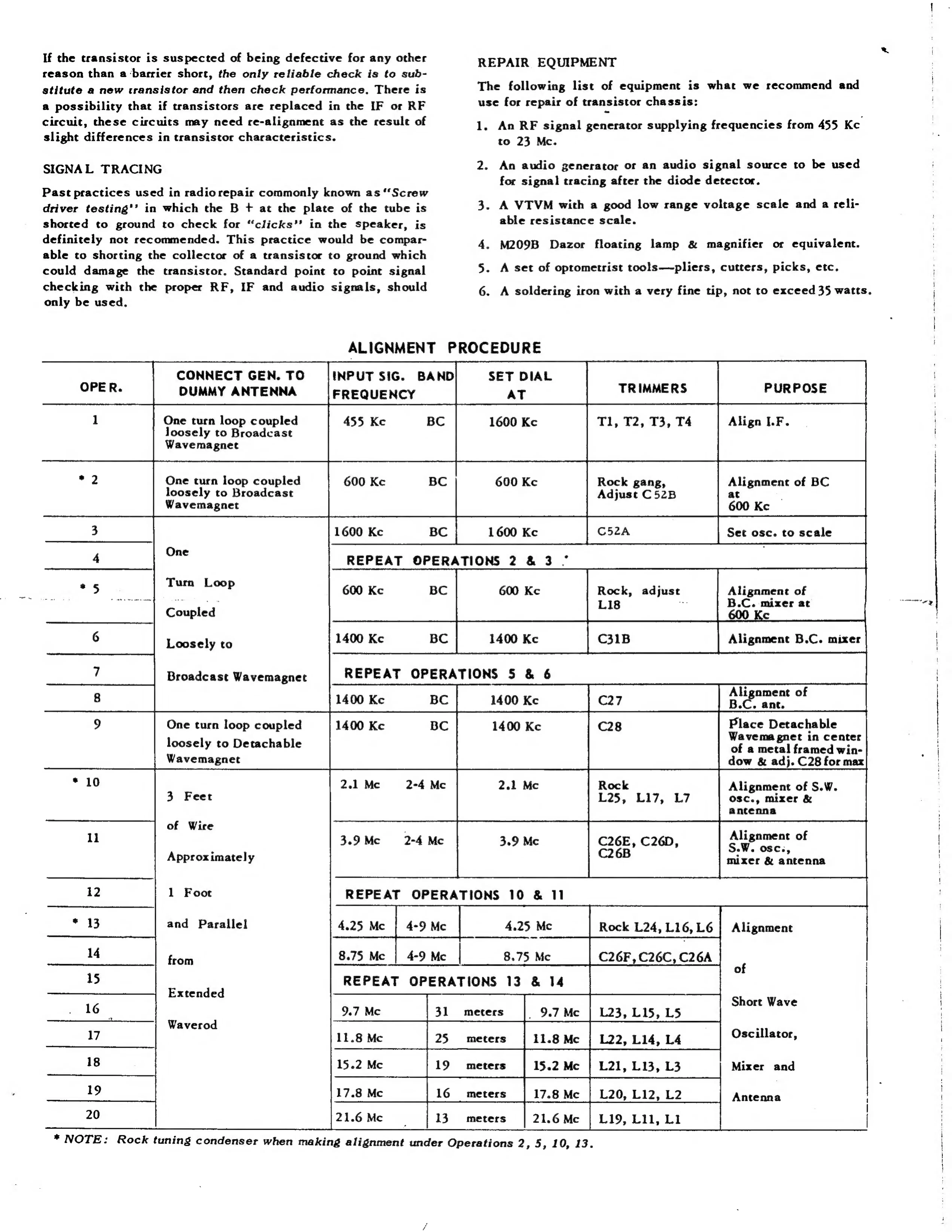 Zenith Royal 1000 - Repair and Alignment; Recommended Repair Equipment; Signal Tracing Methodology; Alignment Procedures