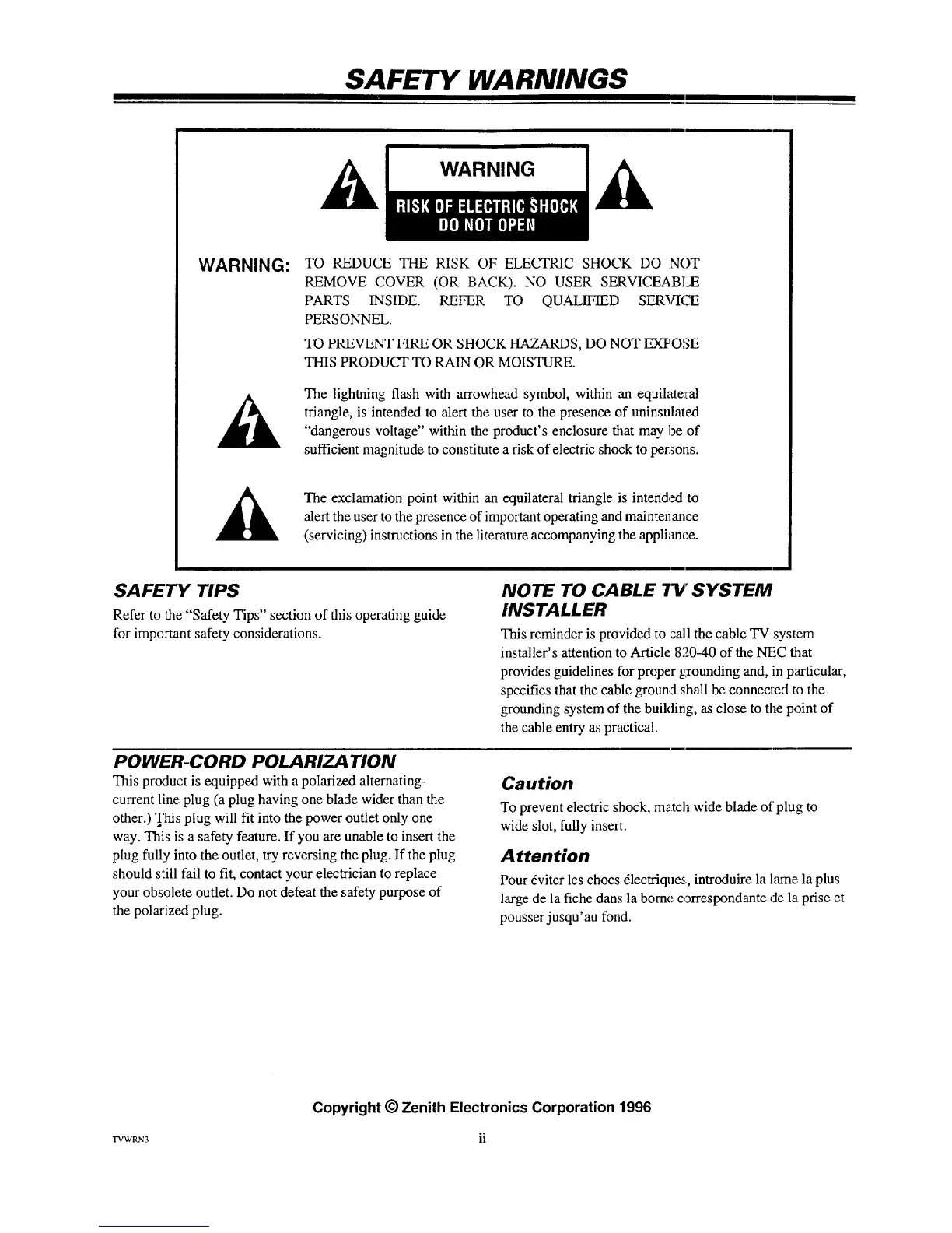 Copyright © Zenith Electronics Corporation 1996