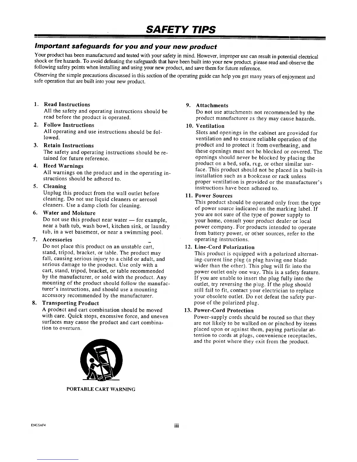 Observing the simple precautions discussed in this section of the operating guide can help you get many years of enjoyment and