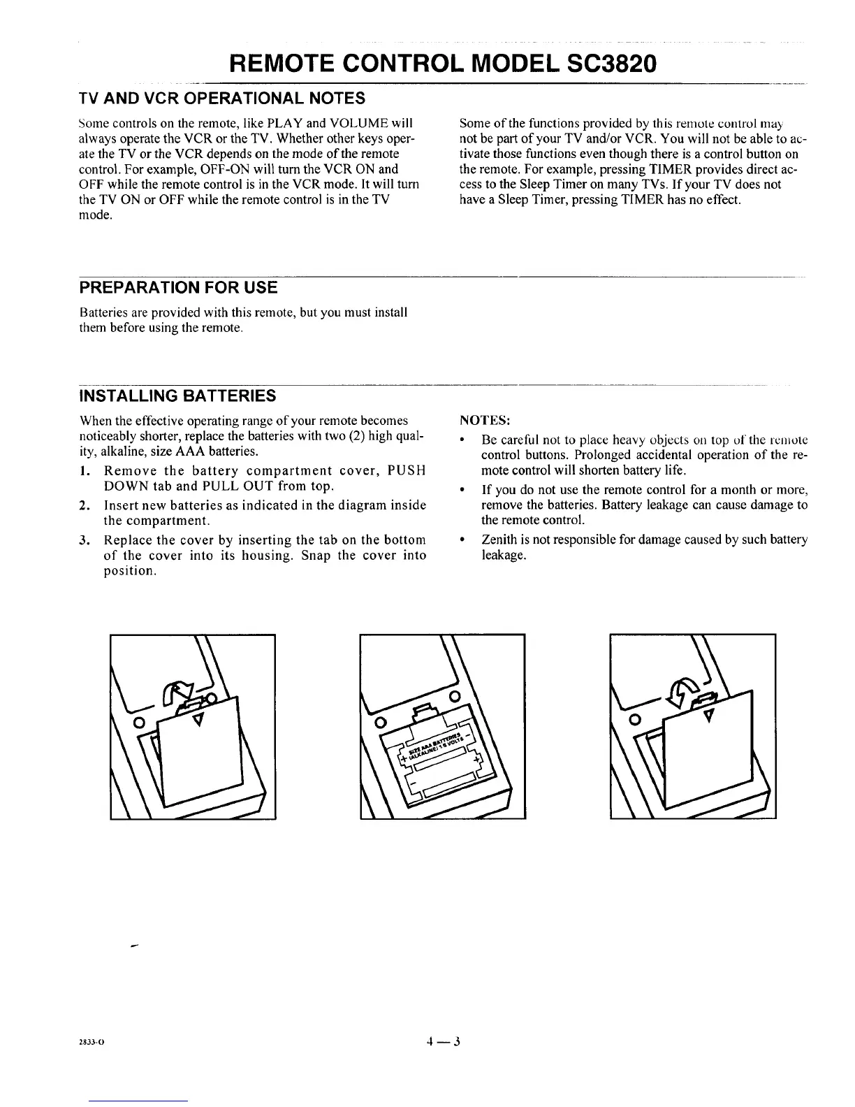 • Zenith is not responsible for damage caused by such battery