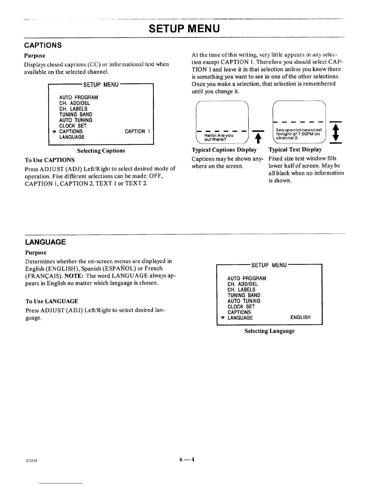 Press ADJUST (ADJ) Left/Right to select desired lan-