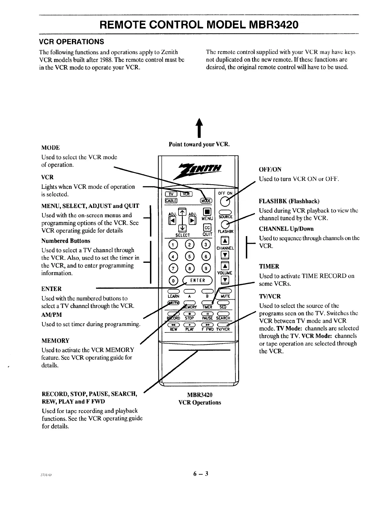 REMOTE CONTROL MODEL MBR3420